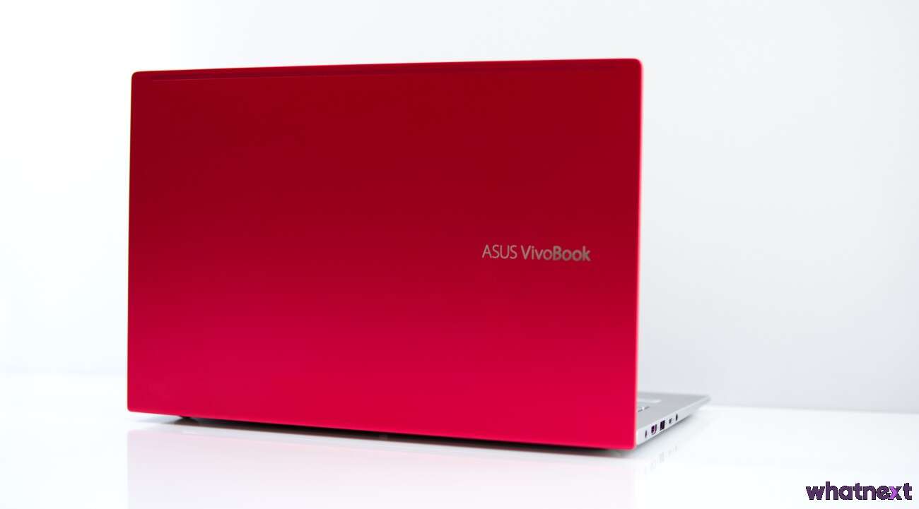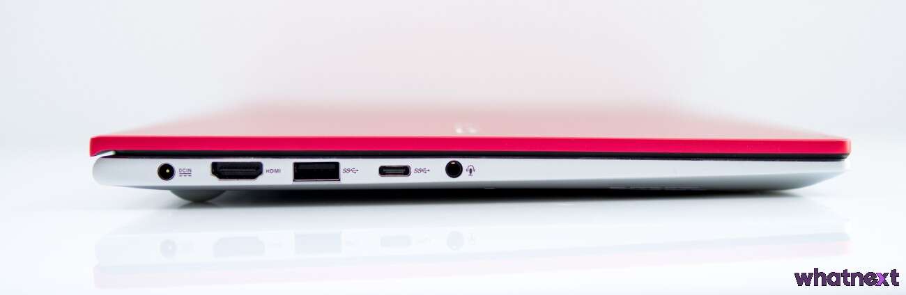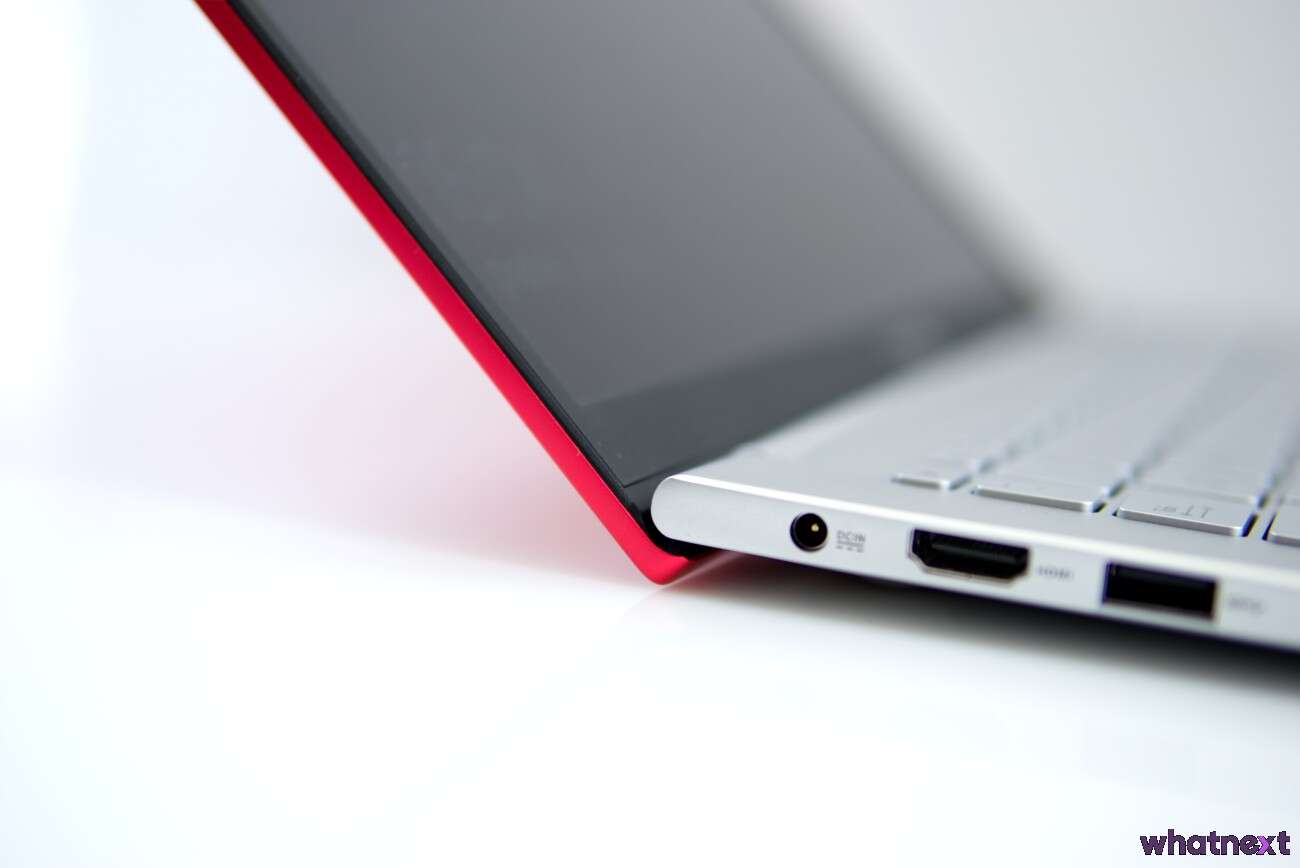 Z całej kolorowej gamy VivoBooków S14 mi w udziale przypadł cze… róż… W zależności jak pada światło, pokrywa laptopa jest czerwona, bądź agresywnie różowa. Katalogowo jest to kolor Resolut Red. Nie ukrywam, robi to bardzo pozytywne wrażenie. Choć pozostałe warianty kolorystyczne też są efektowne.