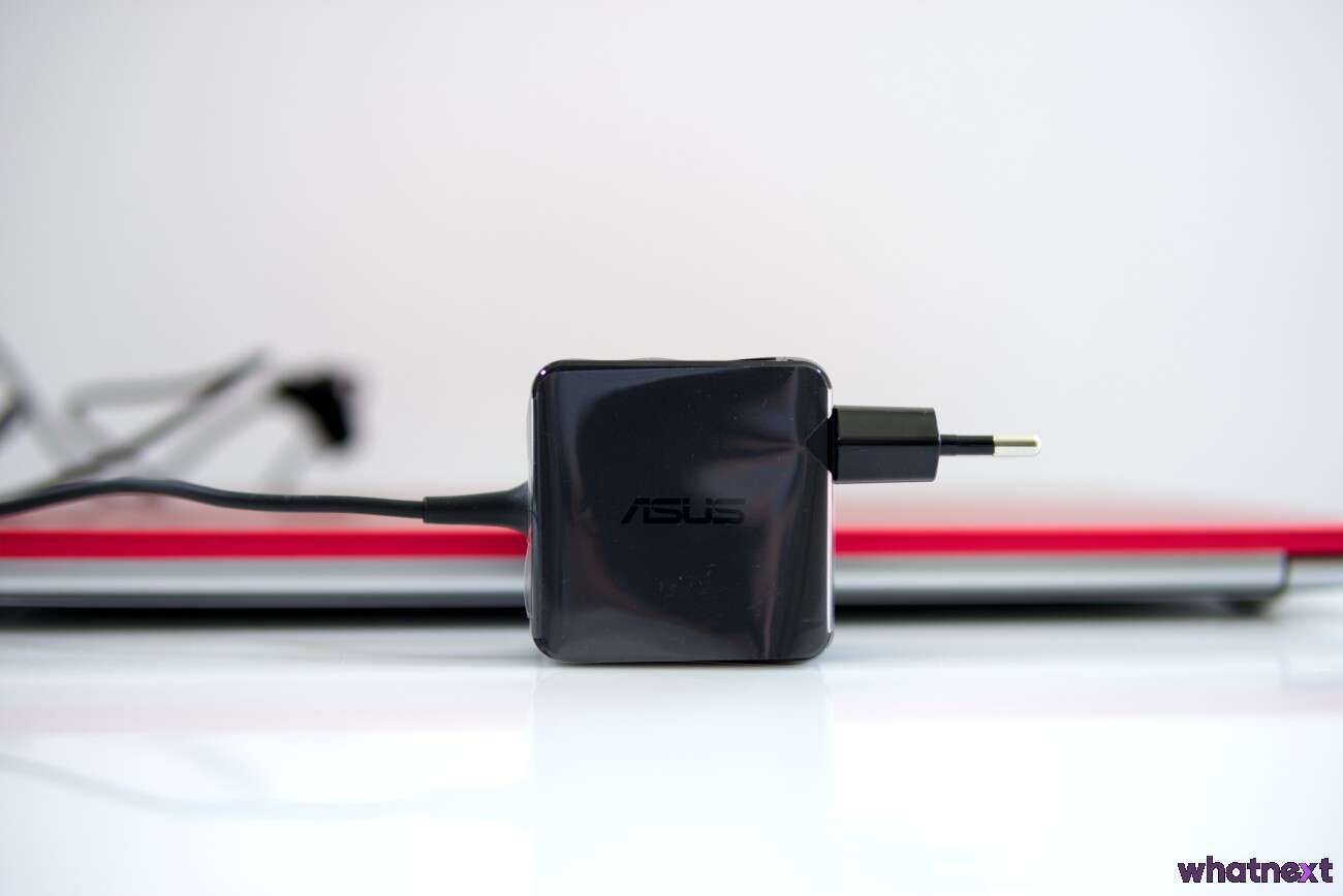 Ładowarka jest niewiele większa od tej smartfonowej, ale jest w stanie dostarczyć prąd o mocy 65W. To pozwala naładować laptop do pełna w niecałe 2 godziny. Asus niestety uparcie stosuje przeróżne ładowarki do swoich laptopów. W efekcie mając w tym samym czasie trzy laptopy firmy, każdego z nich musiałem ładować inną ładowarką.