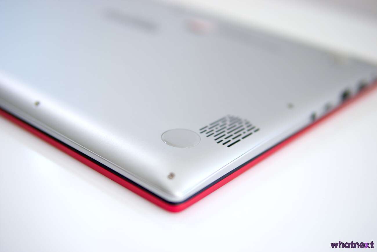 W prostych czynnościach nie zobaczymy niewielkiej wydajności, a laptop odwdzięczy się nam bezgłośną pracą oraz zawsze chłodną obudową. Warto też wspomnieć o sporym wyborze portów i niezłych głośnikach. Do tego dostaniemy solidnie wykonaną, metalową konstrukcję oraz kolorowe klapy do wyboru. Truskawką na torcie zostają efektownie pomalowane krawędzi klawisza Enter, który skutecznie przyciąga wzrok.
