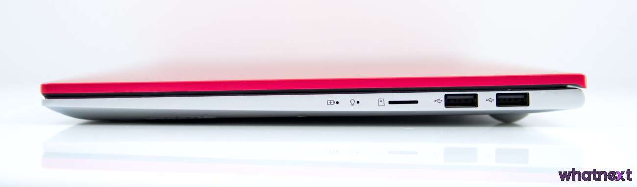 O tak oportowane ultrabooki walczyliśmy! Portów w VivoBooku S14 mamy naprawdę sporo. Na prawym boku są to dwa porty USB 2.0 oraz czytnik kart pamięci microSD.
