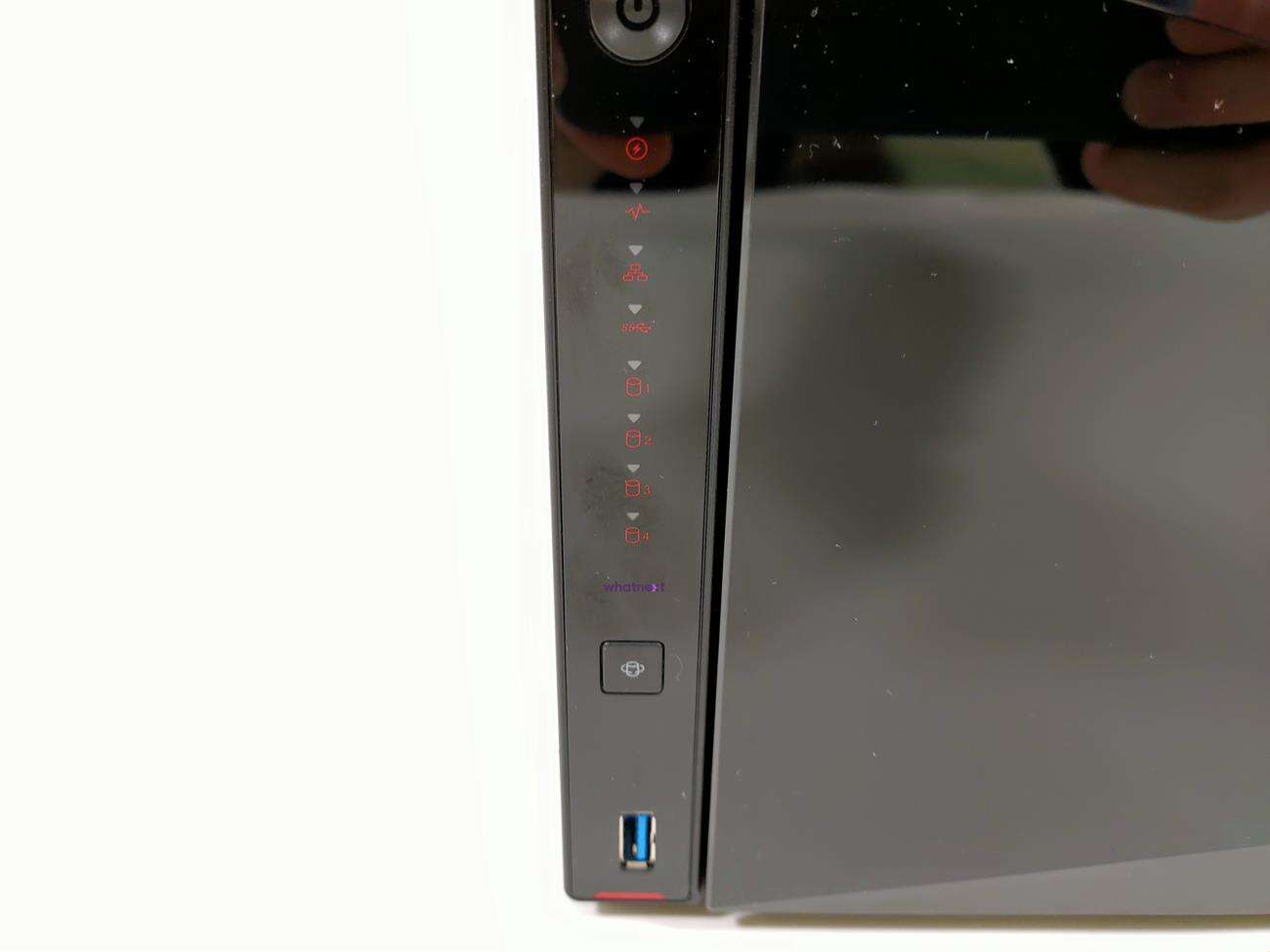Asustor Nimbustor 4 AS5304 ma jeszcze jedną zaletę – wygląd. Bardzo podoba mi się ten design i moim zdaniem urządzenie spokojnie może stać na widoku, nie trzeba go chować. Warto też pamiętać, że z przodu znajduje się wejście USB oraz przycisk do bardzo szybkiego i łatwego wykonania backupu.