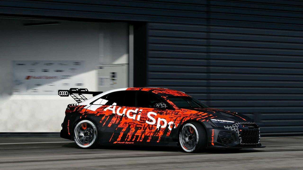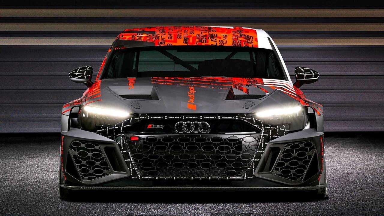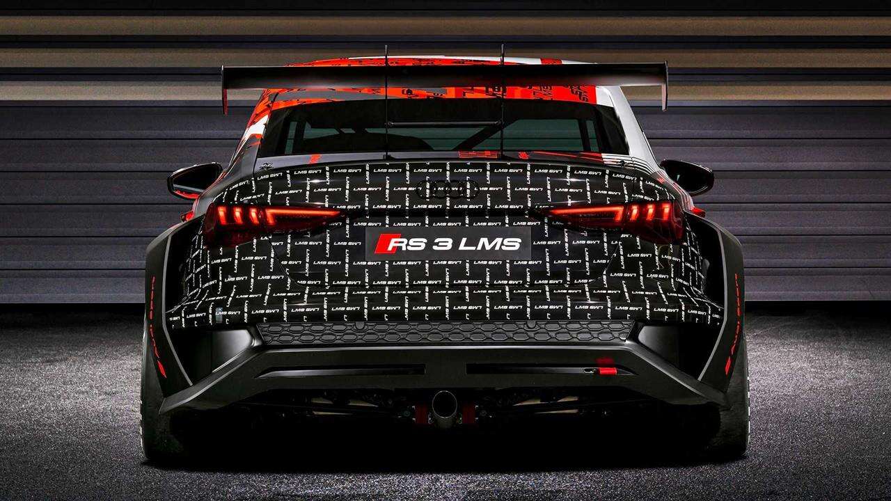 Co zadziwiające, nowy RS3 LMS radykalnie różni się od swojego poprzednika i pod względem stylistycznym podąża za Audi A3 najnowszej generacji, dzierżąc gigantyczną wręcz osłonę chłodnicy, centralnie zamontowaną rurę wydechową z tyłu oraz ogromne, stałe tylne skrzydło.