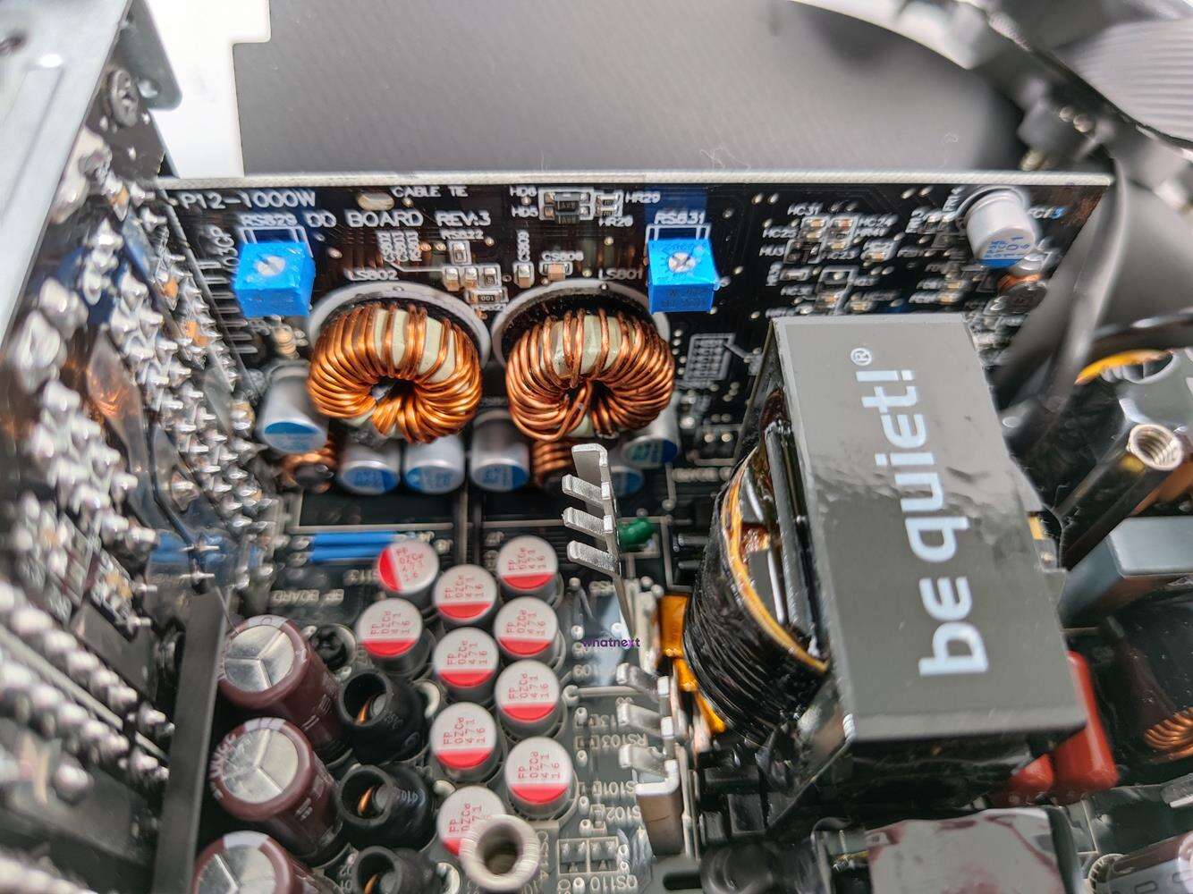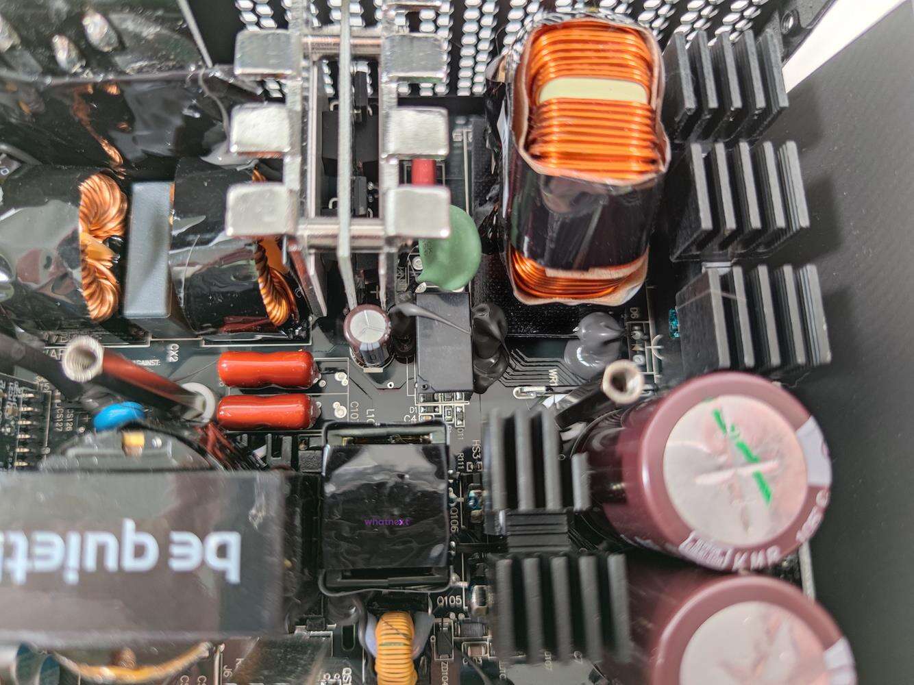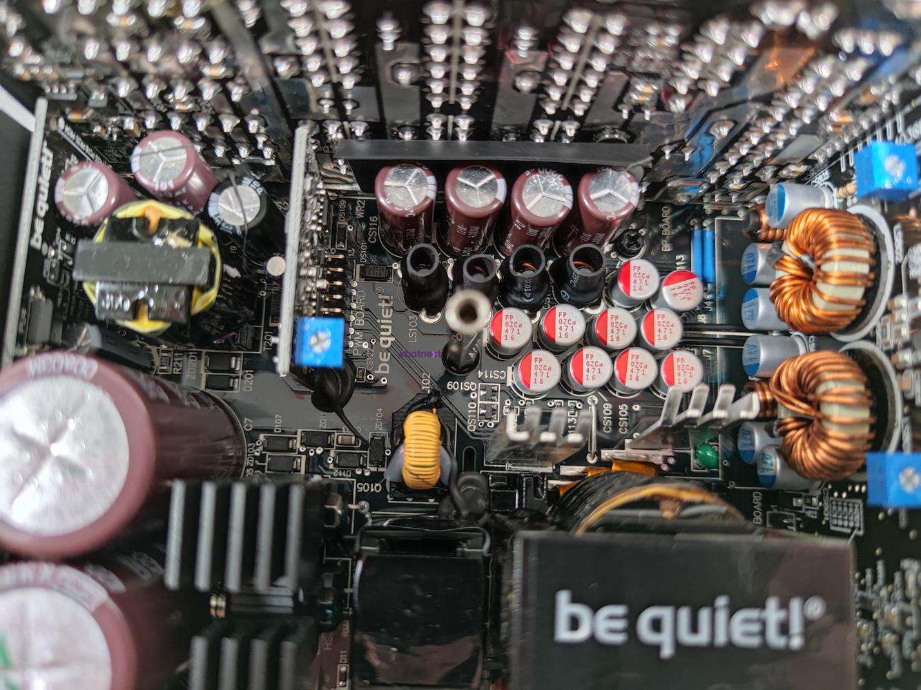 Samo wnętrze jest znakomicie wykonane. Na pokładzie mamy dwa największe kondensatory firmy Nippon Chemi-Con. Ich parametry wynoszą 420 V i 330 uF. Mogą one pracować w temperaturze do 105°C. Be quiet! pomyślał też o przetwornicy DC-DC czy aktywnym PFC. Nie mogło też zabraknąć pełnego kompletu zabezpieczeń: zabezpieczenie nadprądowe (OCP), zabezpieczenie nadnapięciowe (OVP), zabezpieczenie podnapięciowe (UVP), zabezpieczenie przed zwarciem (SCP), zabezpieczenie przed nadmierną temperaturą (OTP) i zabezpieczenie nadmocowe (OPP).