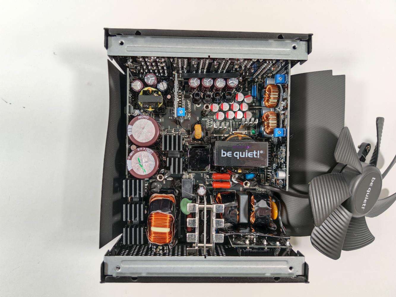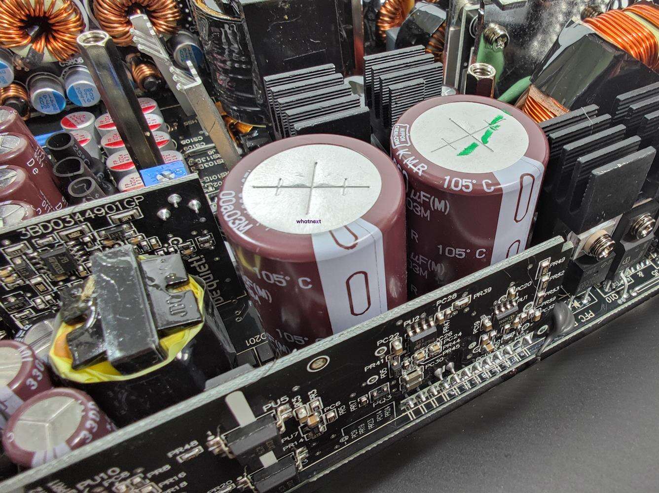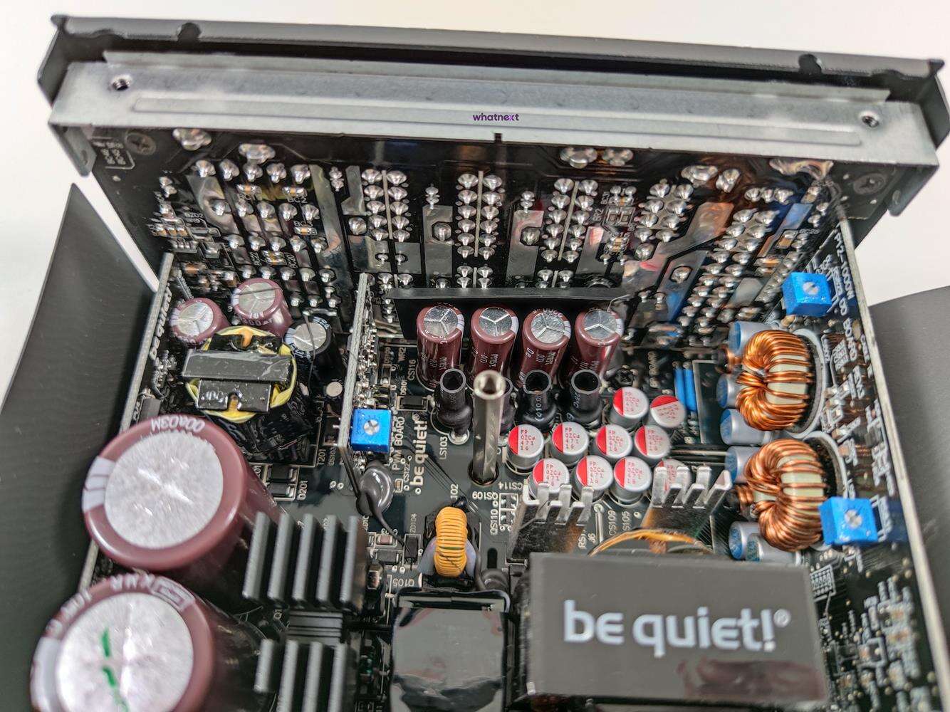 Samo wnętrze jest znakomicie wykonane. Na pokładzie mamy dwa największe kondensatory firmy Nippon Chemi-Con. Ich parametry wynoszą 420 V i 330 uF. Mogą one pracować w temperaturze do 105°C. Be quiet! pomyślał też o przetwornicy DC-DC czy aktywnym PFC. Nie mogło też zabraknąć pełnego kompletu zabezpieczeń: zabezpieczenie nadprądowe (OCP), zabezpieczenie nadnapięciowe (OVP), zabezpieczenie podnapięciowe (UVP), zabezpieczenie przed zwarciem (SCP), zabezpieczenie przed nadmierną temperaturą (OTP) i zabezpieczenie nadmocowe (OPP).