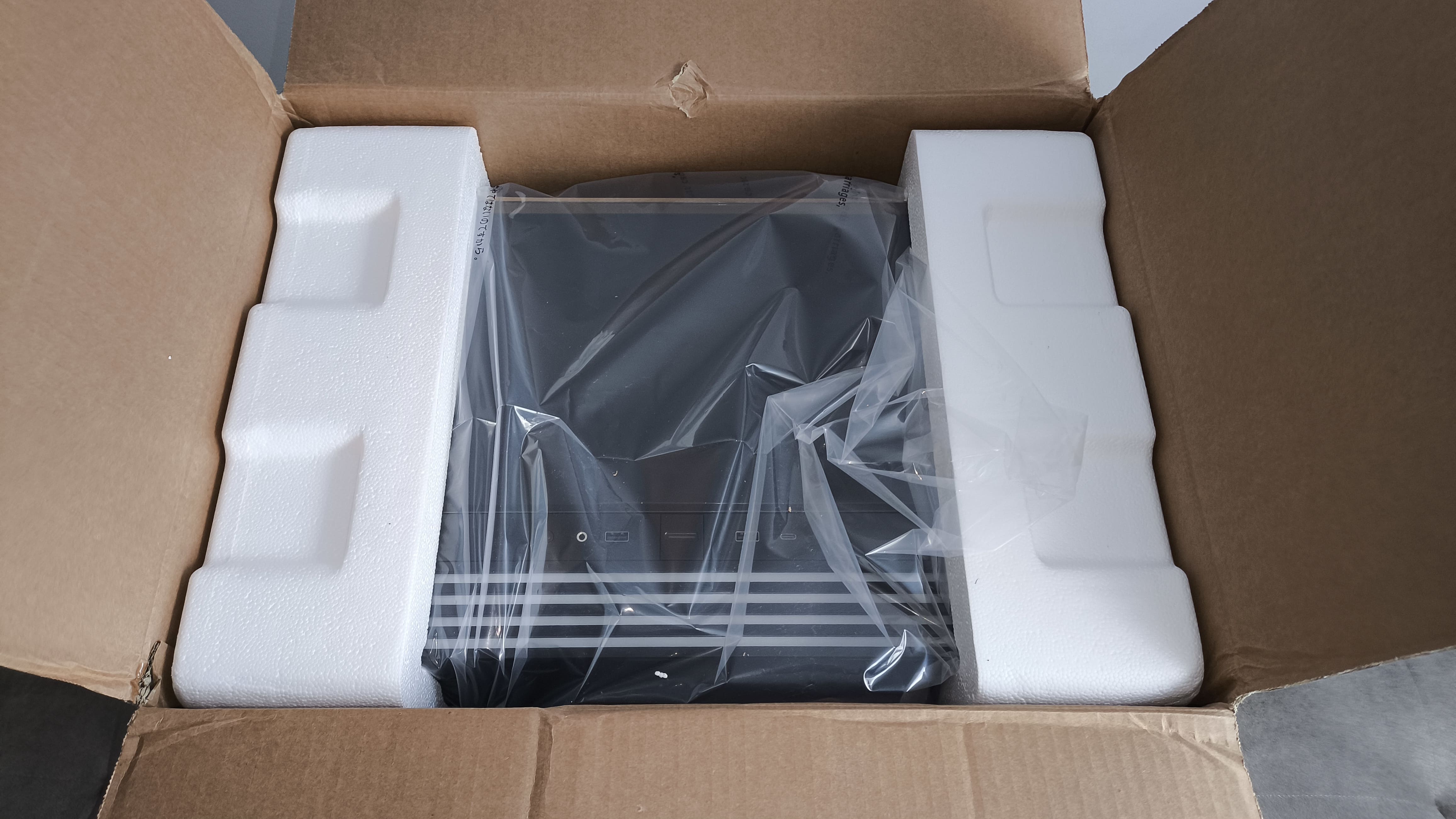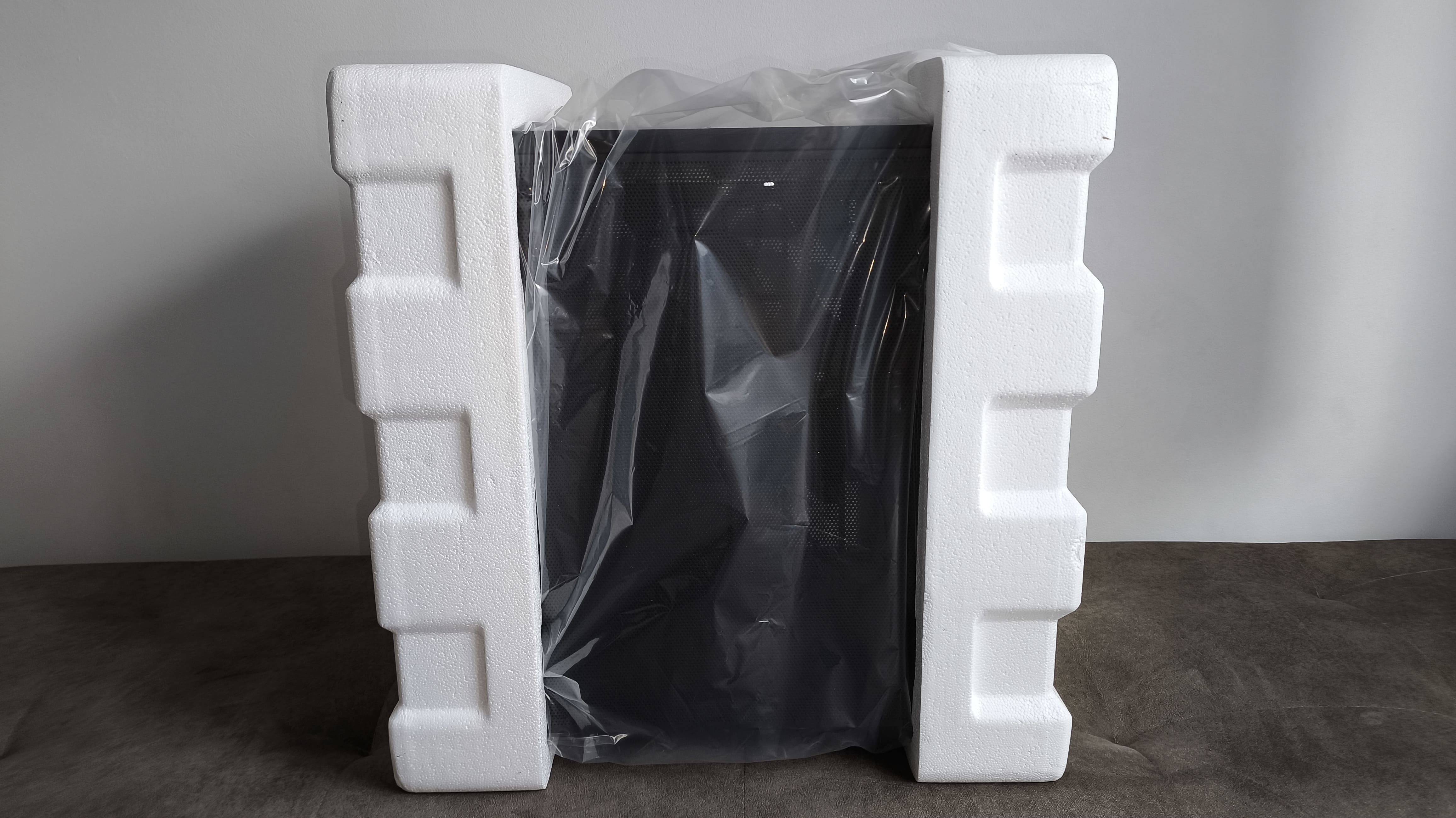 Po wyjęciu Light Base 600 LX z kartonu, obudowa jest zabezpieczona dwoma elementami z pianki o zamkniętych komórkach, które chronią ją przed uszkodzeniami podczas transportu. Dodatkowo, obudowa znajduje się w przezroczystym worku foliowym, co zapobiega osiadaniu kurzu i zabrudzeń.