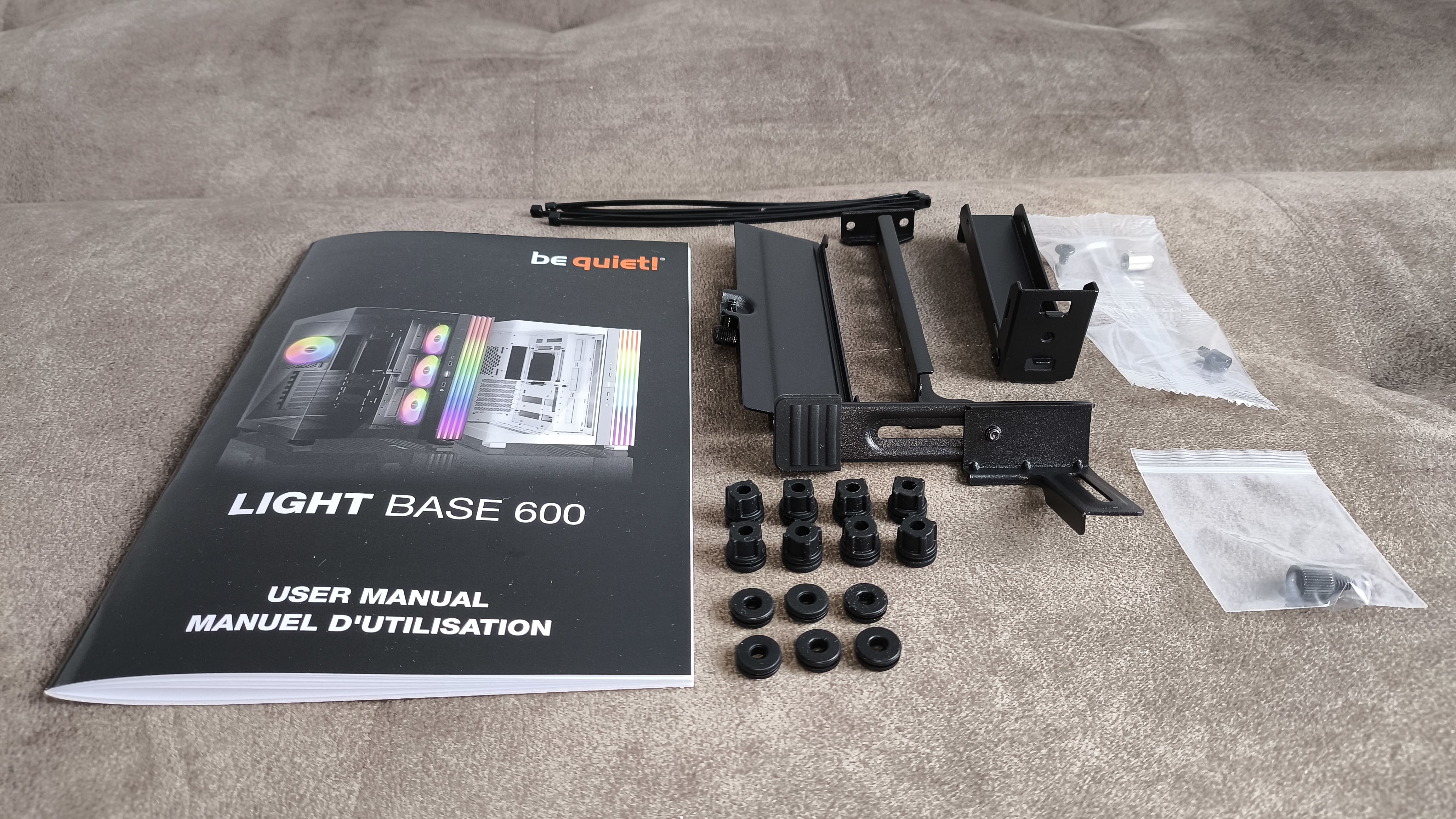 W pudełku znajdują się także komponenty pozwalające na obrót pięciu z siedmiu zaślepek PCI-E, co umożliwia wyeksponowanie karty graficznej w orientacji pionowej. Jak przystało na be quiet!, do obudowy dołączono także starannie przygotowaną i szczegółową instrukcję – coś, co coraz rzadziej spotyka się we współczesnych konstrukcjach.