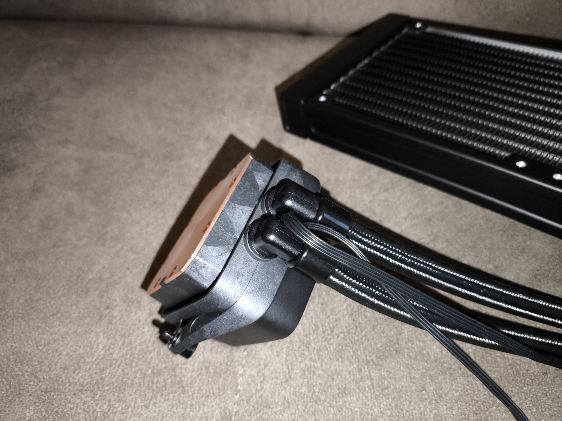 Taka długość umożliwia komfortowy montaż radiatora zarówno na froncie, jak i w górnej części obudowy, także w większych konstrukcjach. Przy blokopompce węże osadzono na ruchomych króćcach, co znacząco ułatwia instalację i redukuje naprężenia w ciasnych przestrzeniach roboczych.