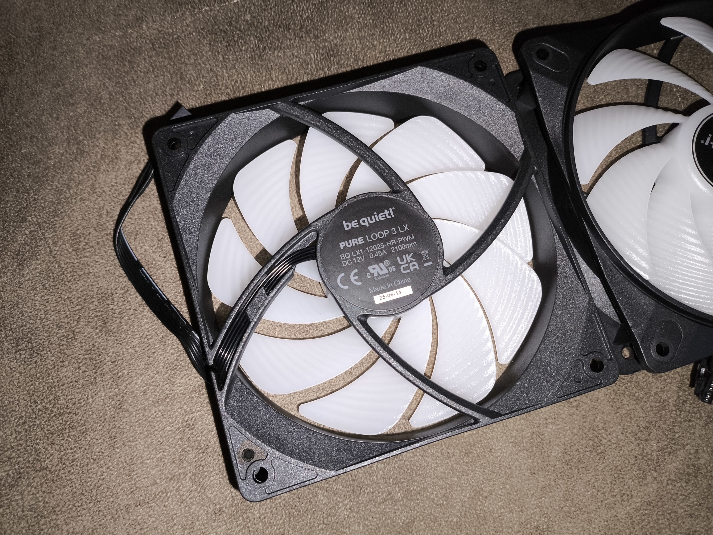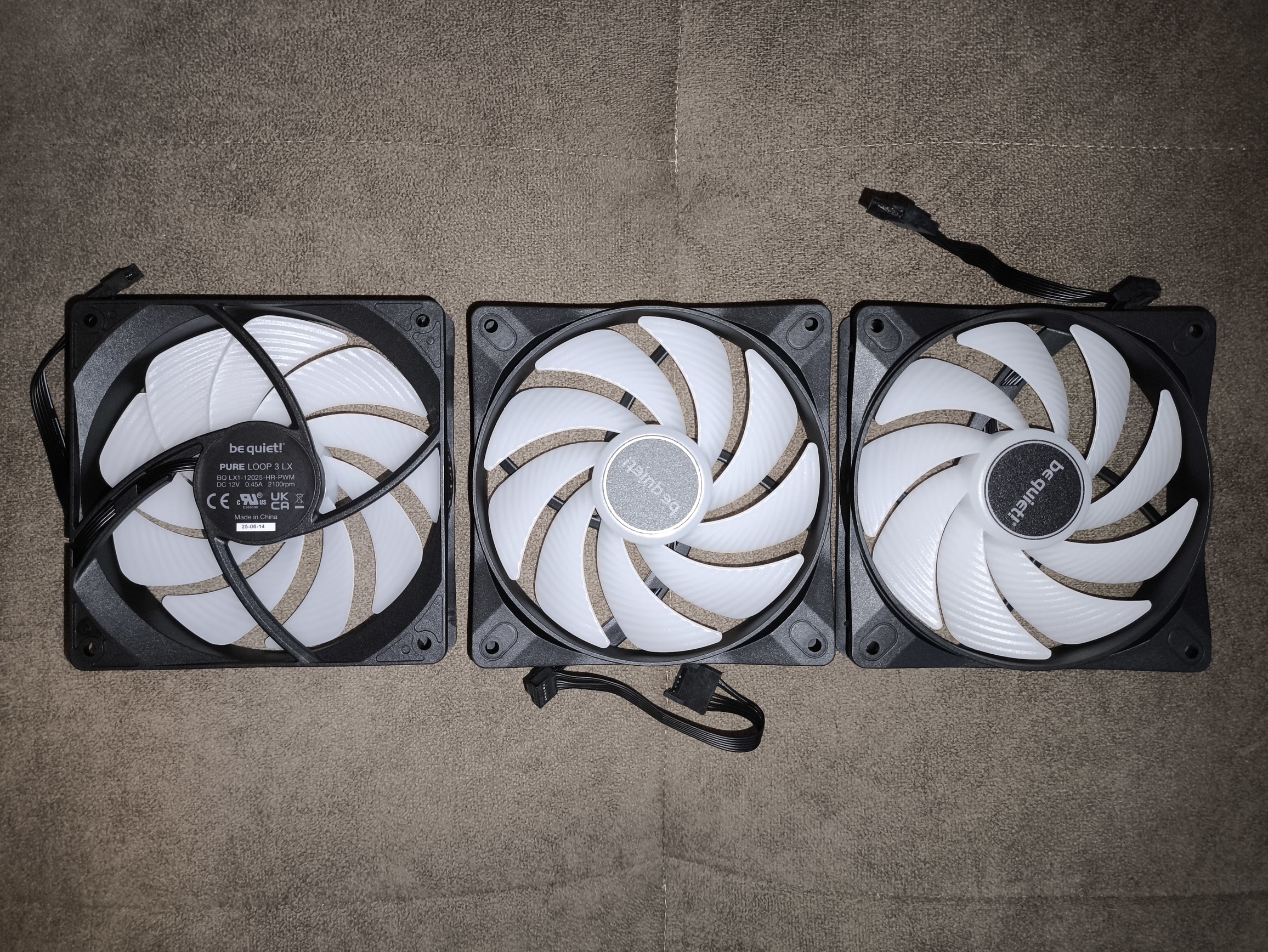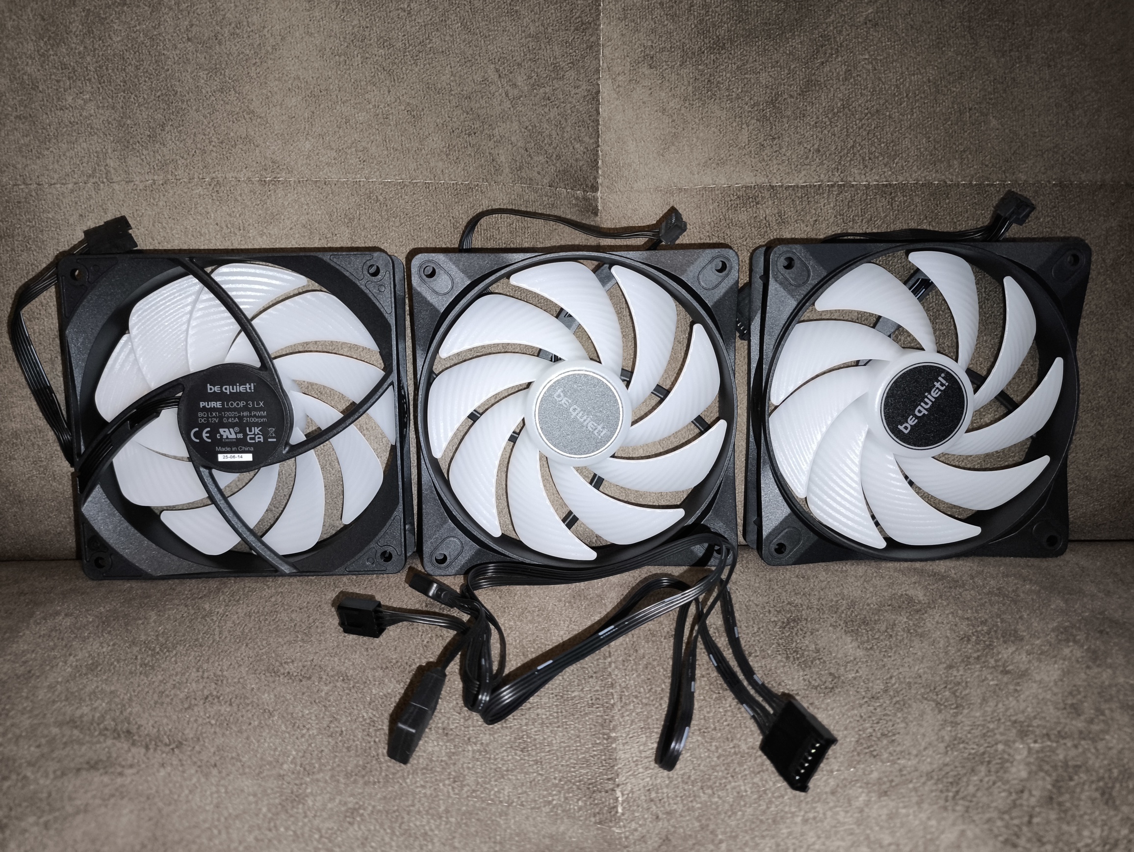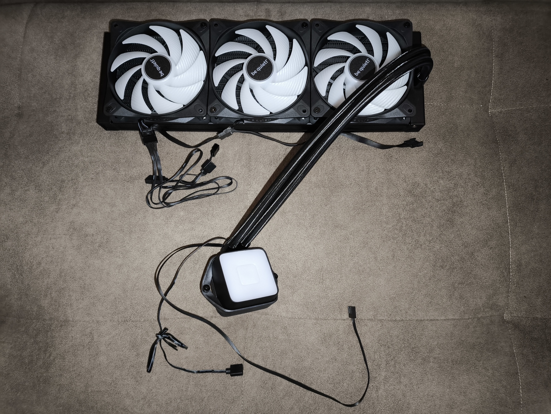 Chłodzenie be quiet! Pure Loop 3 LX 360 mm fabrycznie wyposażono w trzy wentylatory be quiet! Light Wings LX 120 mm PWM High-Speed, przeznaczone do pracy z radiatorami o gęstym użebrowaniu. Maksymalna prędkość obrotowa wynosi 2100 RPM (±10%), natomiast w praktyce minimalne obroty, osiągnięte podczas testów, spadały do około 250 RPM, co pozwala na bardzo szeroki zakres regulacji.