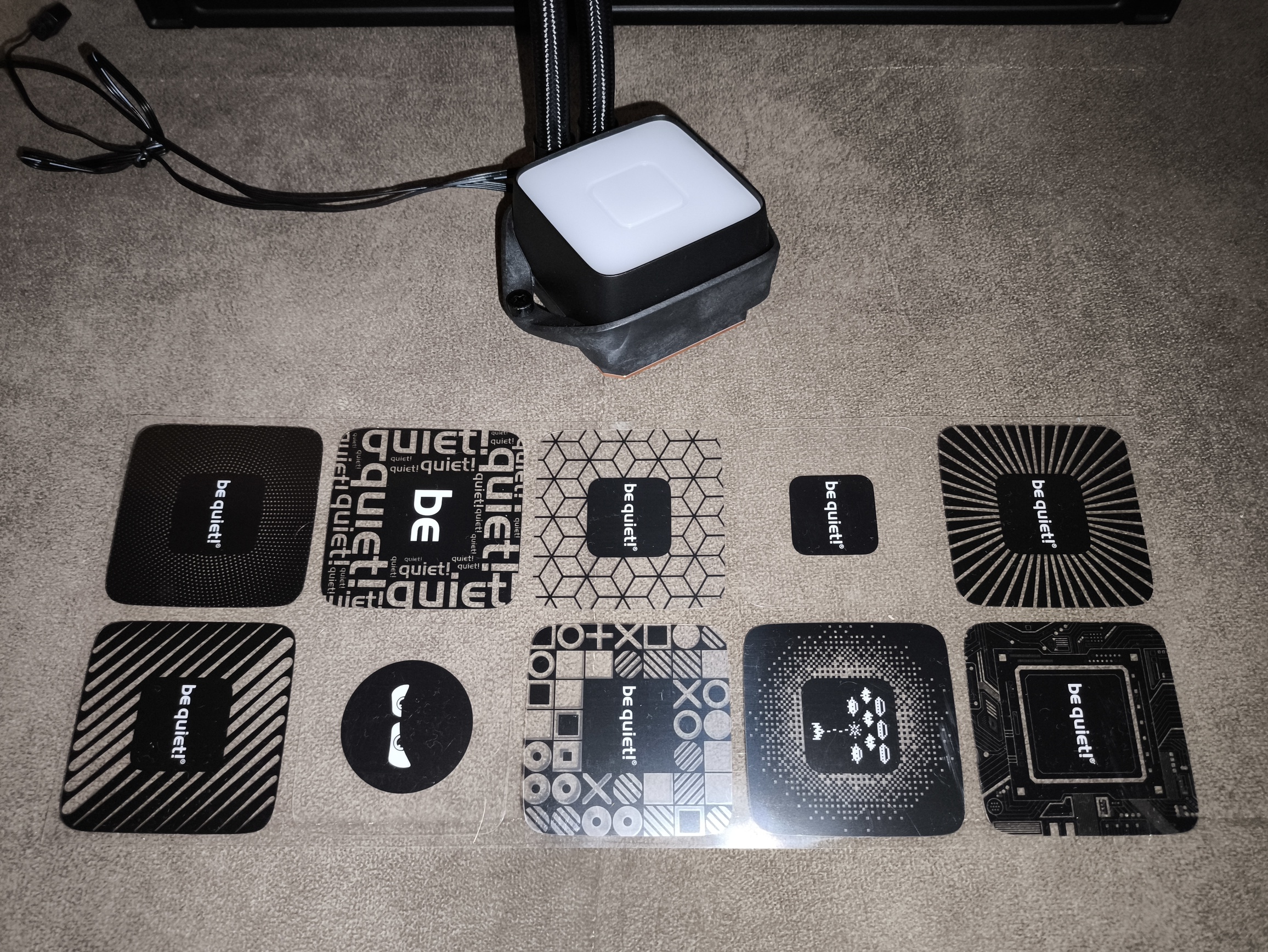 Jak już wspomniałem – przy okazji omawiania opakowania, producent przewidział możliwość personalizacji topu – w komplecie znajduje się dziesięć wymiennych folii, pozwalających na zmianę wzoru i charakteru iluminacji bez konieczności demontażu całej jednostki.