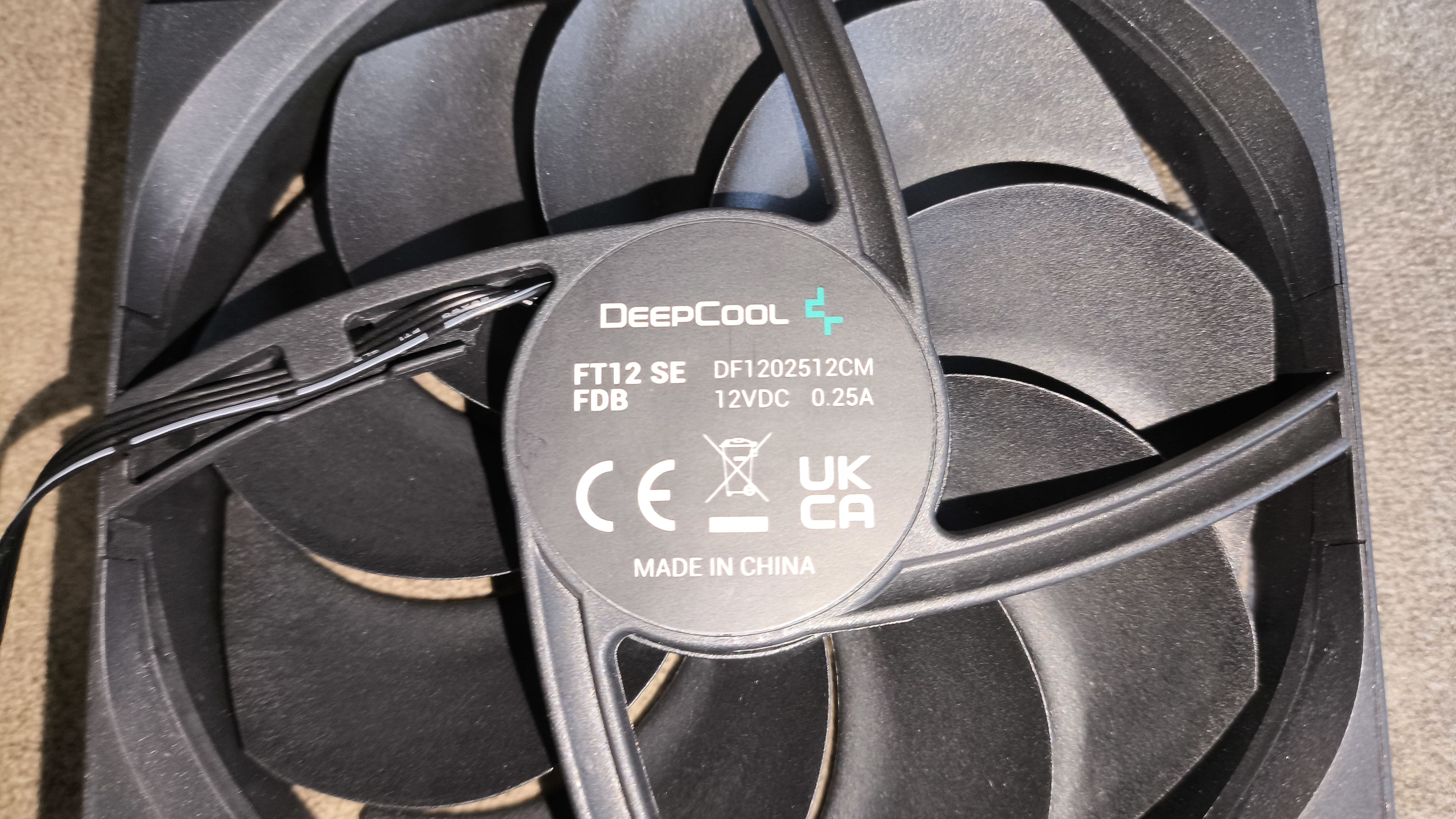 Wentylator, który chłodzi radiator, to model DF1202512CM, znany również jako FK120. Ma on dziewięć łopatek oraz czarną ramę z gumowymi podkładkami na narożnikach, idealnie wpisującą się w stylistykę Zero Dark. Wentylator zasilany jest przez 4-pinowe złącze PWM, podobnie jak adapter, i nie posiada żadnego podświetlenia. Wyposażono go w gumowe narożniki, które redukują drgania i hałas, a dodatkowo uwagę zwracają drobne detale designerskie zastosowane w konstrukcji.