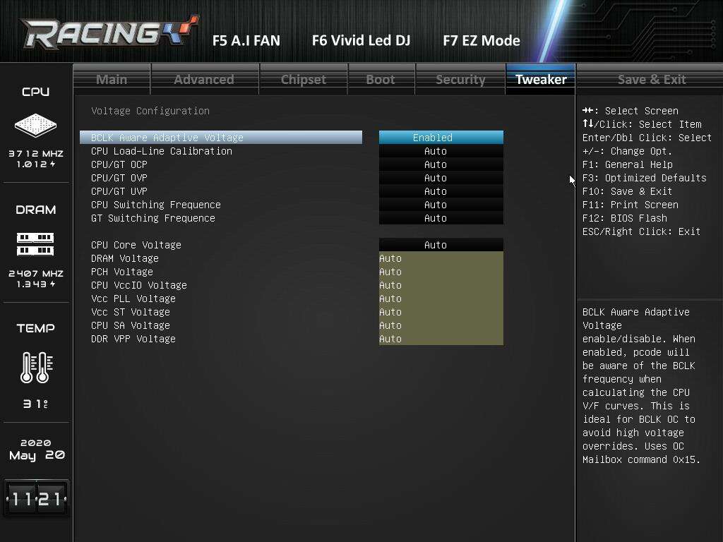 BIOS jest jak zawsze u Biostara – trochę toporny i dziwnie wyglądający. Muszę jednak pochwalić firmę za wreszcie wprowadzenie trybu Ez. Można tam łatwo włączyć XMP czy przejść do ustawień wentylatorów. Pod tym względem jest dobrze. W trybie zaawansowanym wszystkie opcje są ułożone w miarę logicznie. Jest też zakładka do podkręcania, jednakże nie ma zbyt wielu opcji do zmiany. W porównaniu do np. BIOSu Asusa jest w dalszym ciągu słabo.