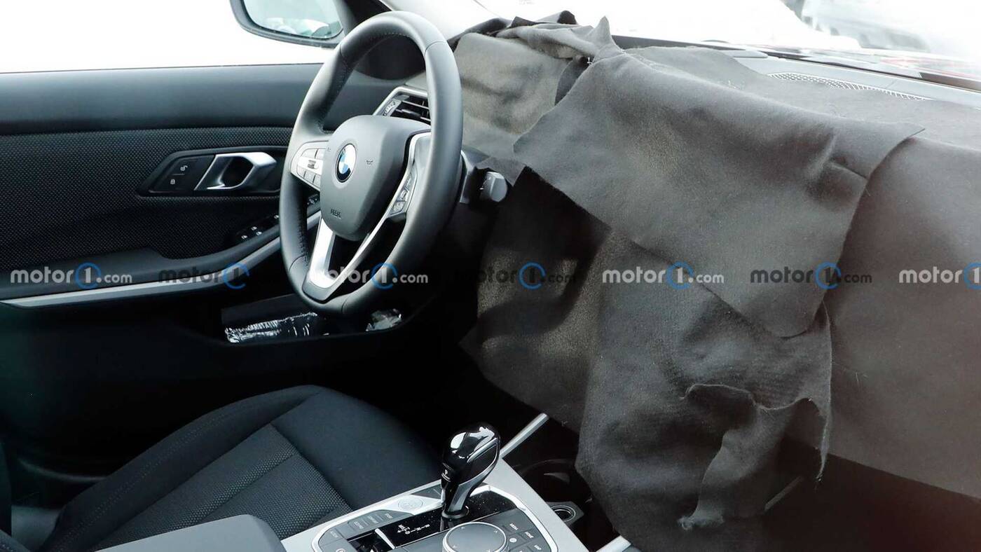 Na pierwszy rzut oka BMW Serii 3 w obecnej formie prototypowej nie różni się wcale od obecnych modeli, ale fotografowie zdołali strzelić kilka fotek kabinie. Tam niestety BMW zasłoniło wszystko, co nas interesuje, bo pod czarnym materiałem najpewniej znajduje się nowy zakrzywiony wyświetlacz firmy, który obejmuje dużą część deski rozdzielczej i w iX oferuje szereg funkcji i usług, które mogą trafić również do Serii 3.