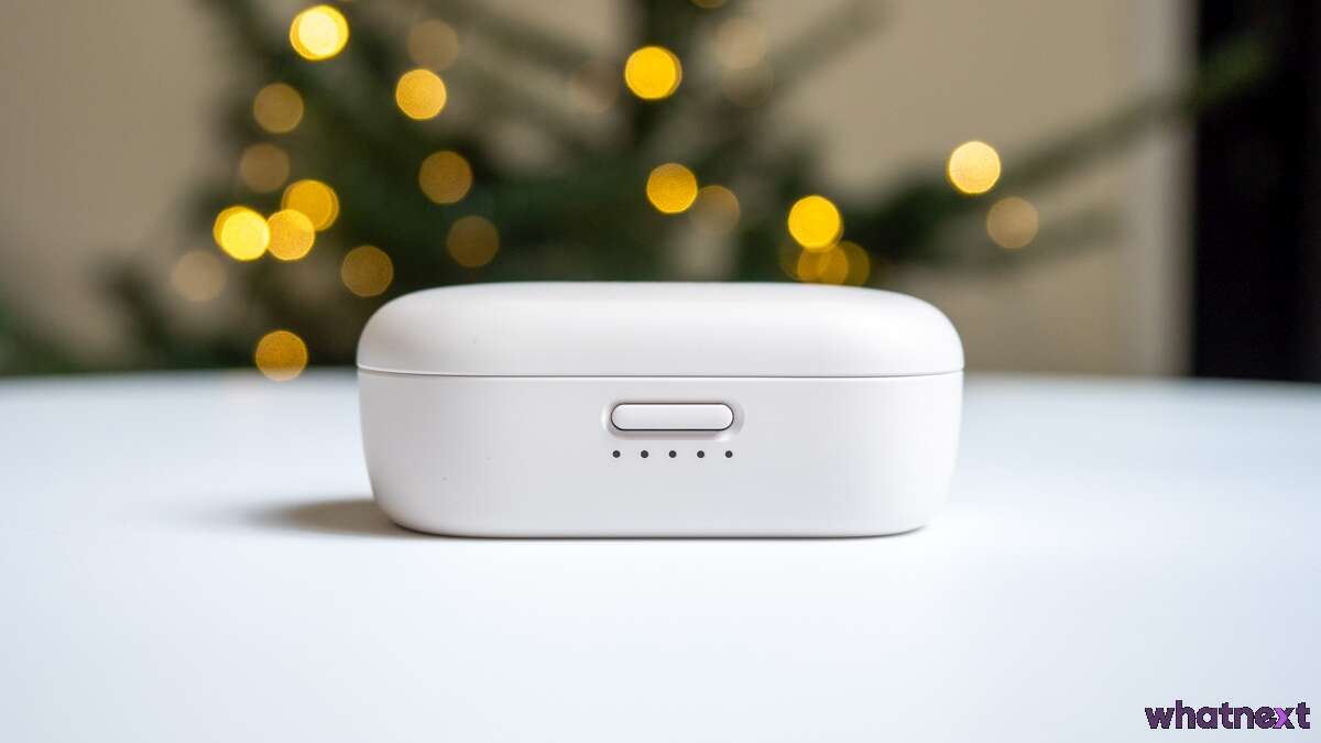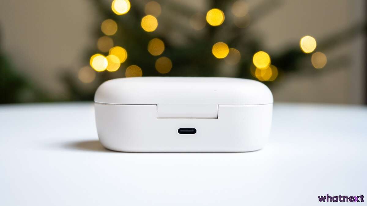 Etui jest bardzo dobrze wykonane. To solidny, gruby plastik pokryty matową powłoką. Nie jest to klasyczna biel, a już nawet delikatna szarość. Nie mniej wygląda to bardzo dobrze, bo nie rysuje się i w przeciwieństwie do błyszczących pokrowców trudniej go pobrudzić. Z jednej strony obudowy znajdziemy diody sygnalizujące stan naładowania akumulatora, z drugiej port USB-C. W środku został umieszczony przycisk nawiązywania połączenia Bluetooth oraz diodę sygnalizującą jego stan.