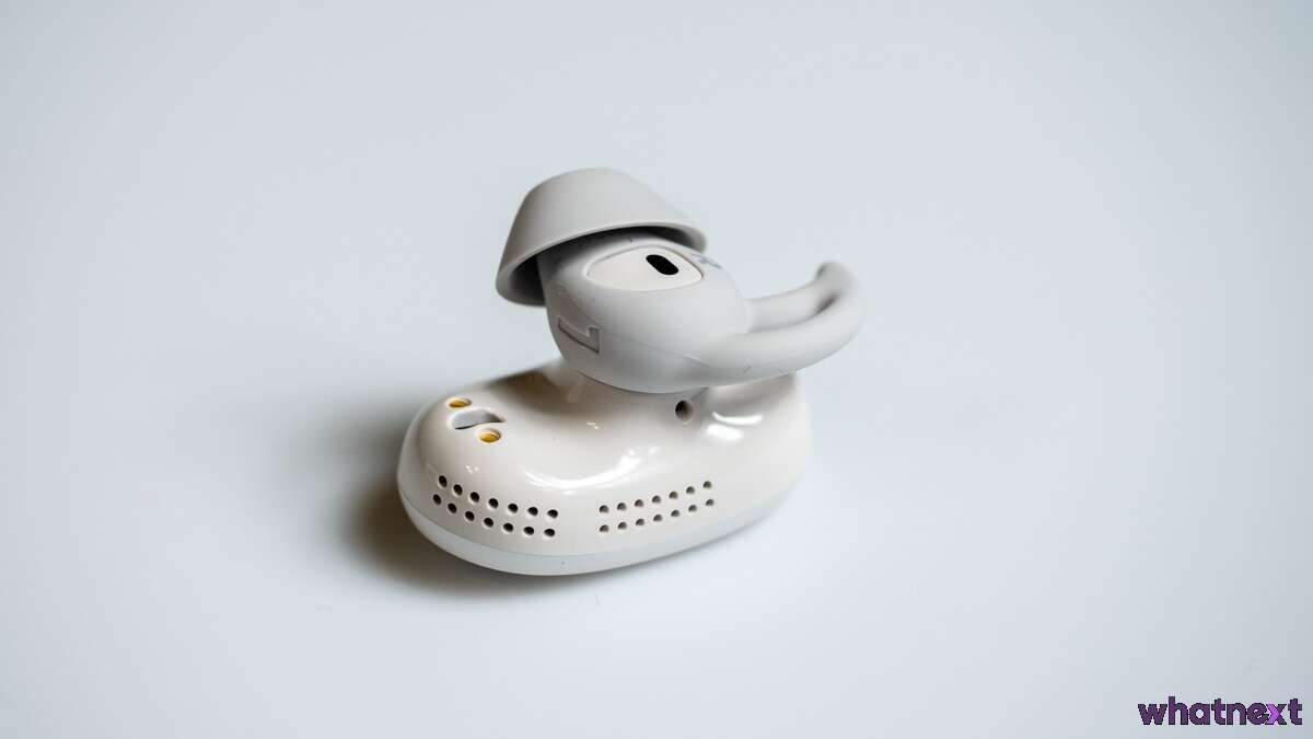 To zasługa gumowych skrzydełek, które łatwo można zaczepić o wnętrze ucha i trzymają się w nich perfekcyjnie. Nawet przy wielogodzinnym korzystaniu ani na moment nie czułem dyskomfortu, a przy tym cały czas byłem pewny tego, że ich nie zgubię.