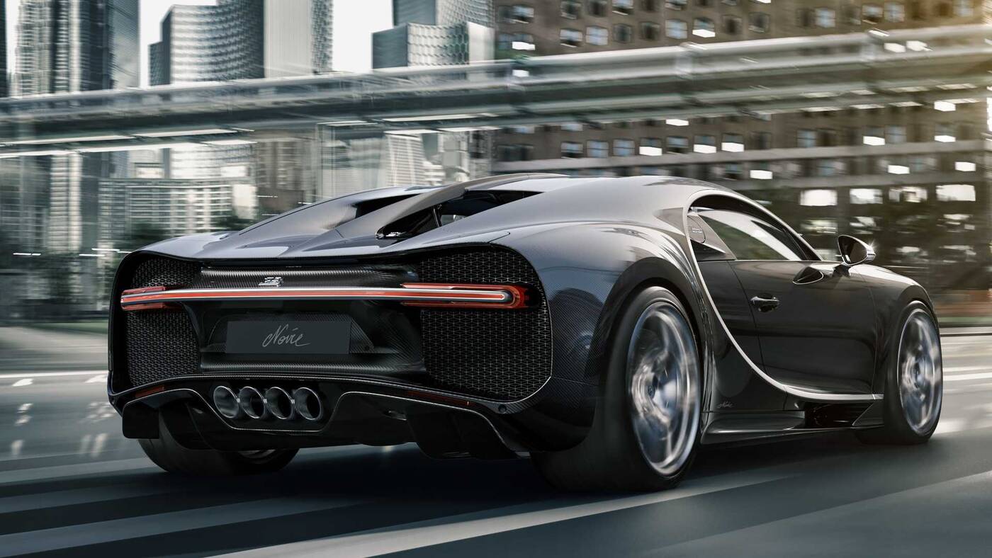 Z kolei Bugatti Chiron Noire Sportive ma matowe wykończenie z odsłoniętym korpusem z włókna węglowego, a elementy zewnętrzne, takie jak układ wydechowy, koła, spoiler, kratka i charakterystyczna linia są w matowej czerni. Wnętrze tego wydania jest jeszcze bardziej czarne niż w Chiron Noire Élégance, a wszystkie napisy i aluminiowe elementy wykończone są w matowej czerni.