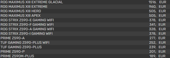 Firma ASUS i MSI ujawniła swoje nowe modele płyt dla procesorów Intel Core nowej generacji. Niestety w niektórych przypadkach cena płyt głównych Z590 jest wręcz niewiarygodna.