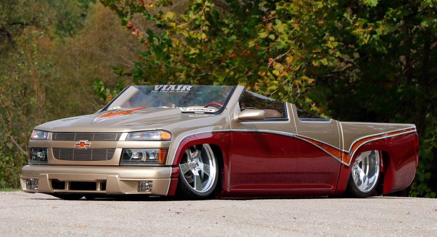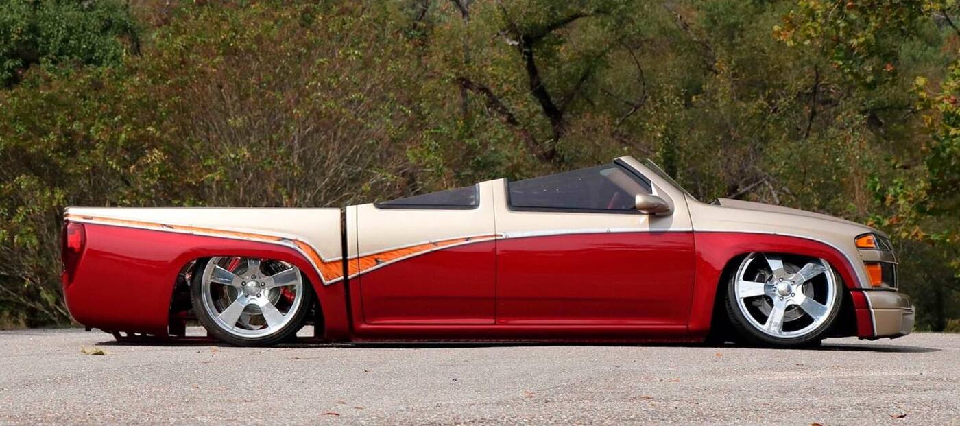 Ten Chevrolet Colorado został pozbawiony dachu, doczekał się nowych szyb bocznych i zawieszenia pneumatycznego, które znacząco obniżyło podwozie. Jego 22-calowe felgi z kolei zaskakują zwłaszcza na przedniej osi, chowają część koła za błotnikami, co dopełnia polaryzujący wygląd tego przerobionego modelu.