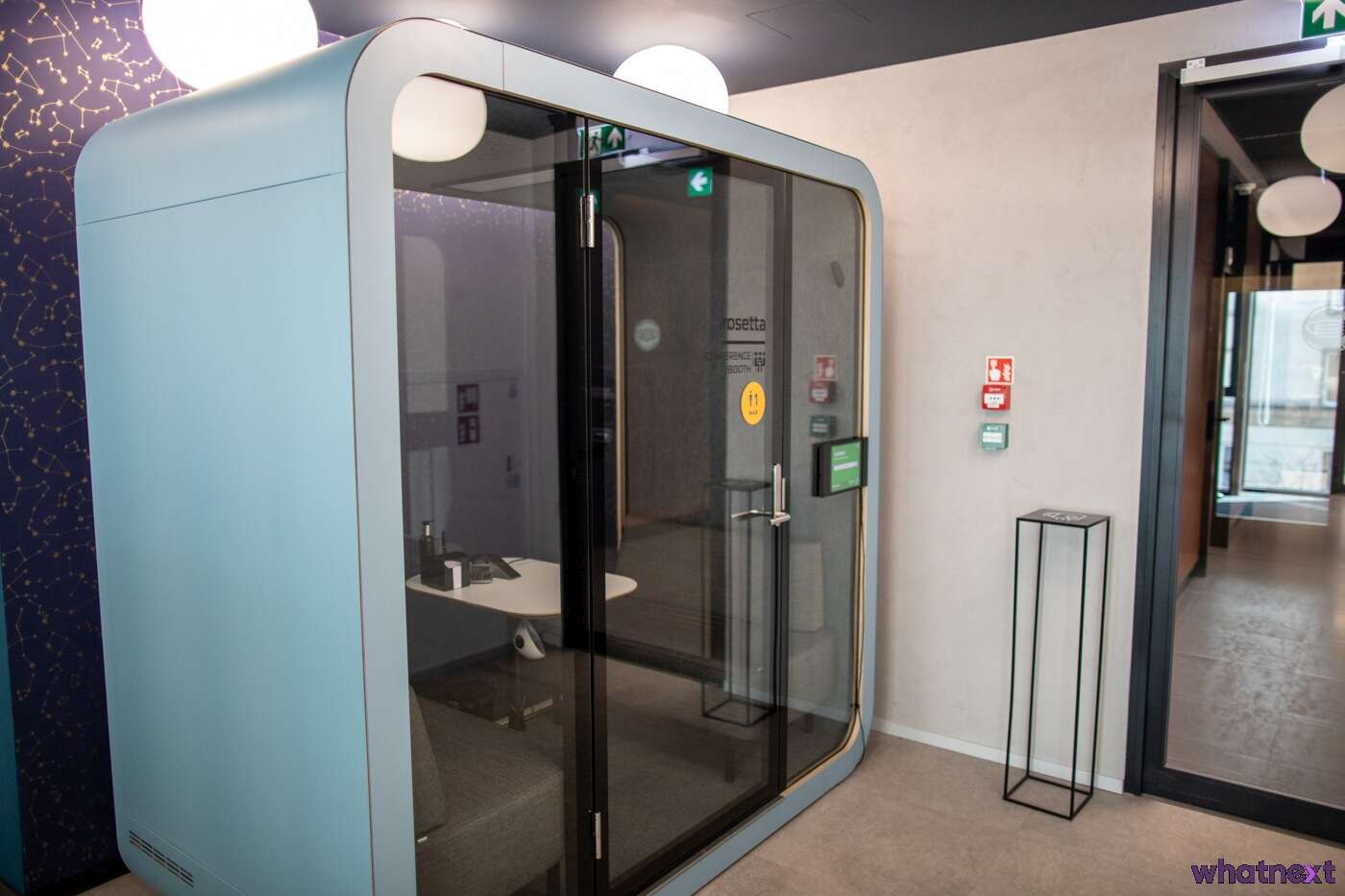W ramach czynszu dostajemy możliwość korzystania z budek konferencyjnych, pokojów konferencyjnych, drukarek (w tym 3D), mamy dostęp do Internetu, monitorów, zaplecza sanitarnego (prysznice i pokoje dla matek z dziećmi), miejscowych rozrywek np. w postaci dobrze wyposażonego pokoju gier, lokalnej restauracji, baru i dobrze wyposażonych kuchni.