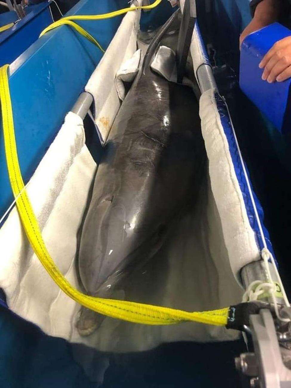 Same delfiny były transportowane w nieznane miejsce, ale podobno miały przed sobą treningowe sesje. Spoczywają z kolei w niebieskich, wypełnionych wodą kołyskach, będąc zawieszonymi w czymś, co wygląda jak nosze.