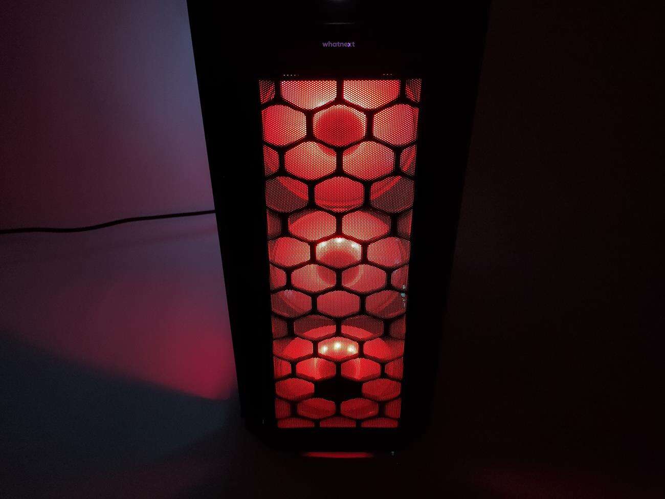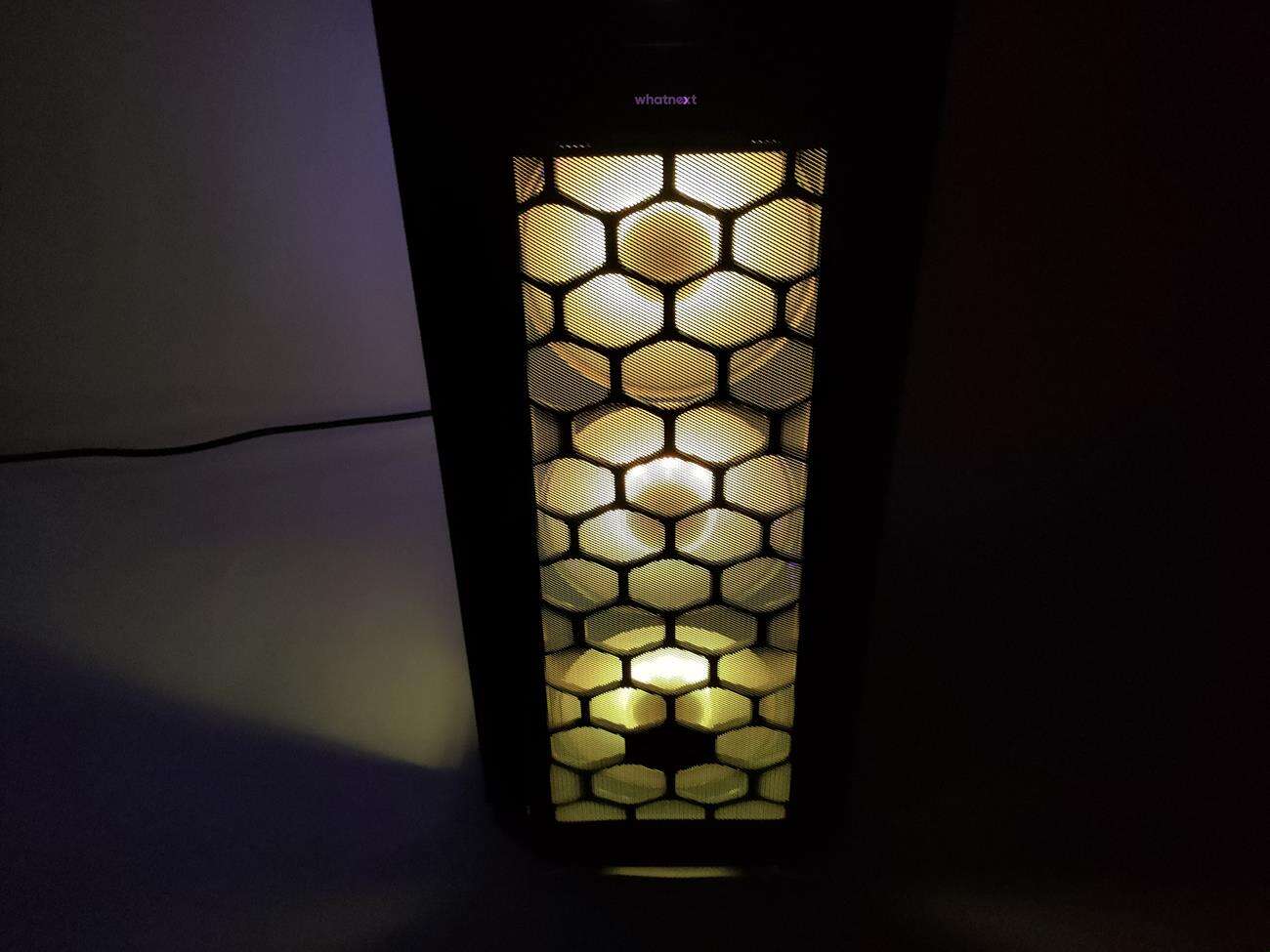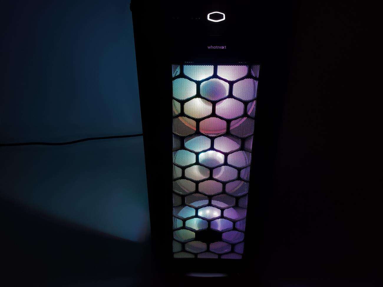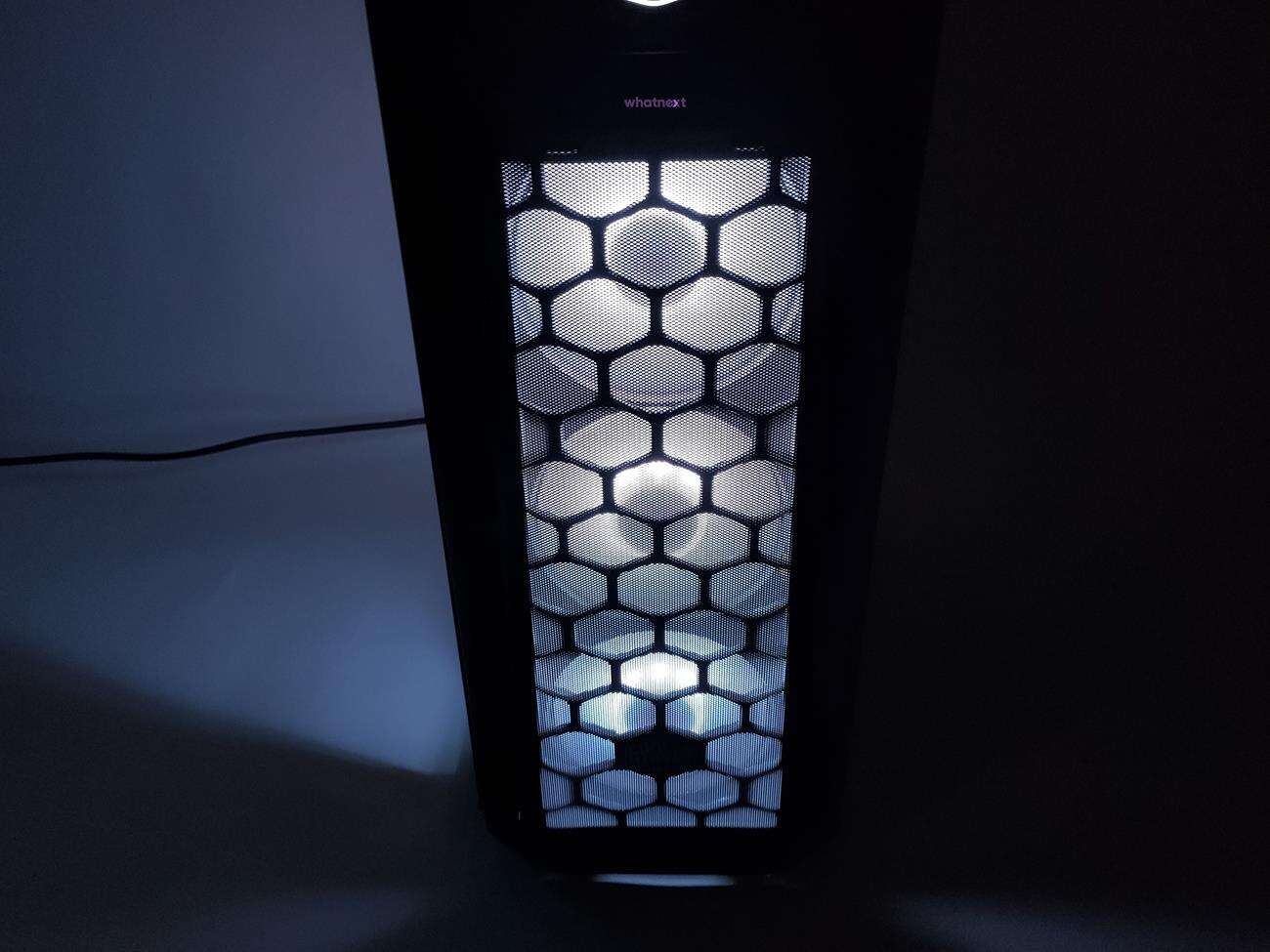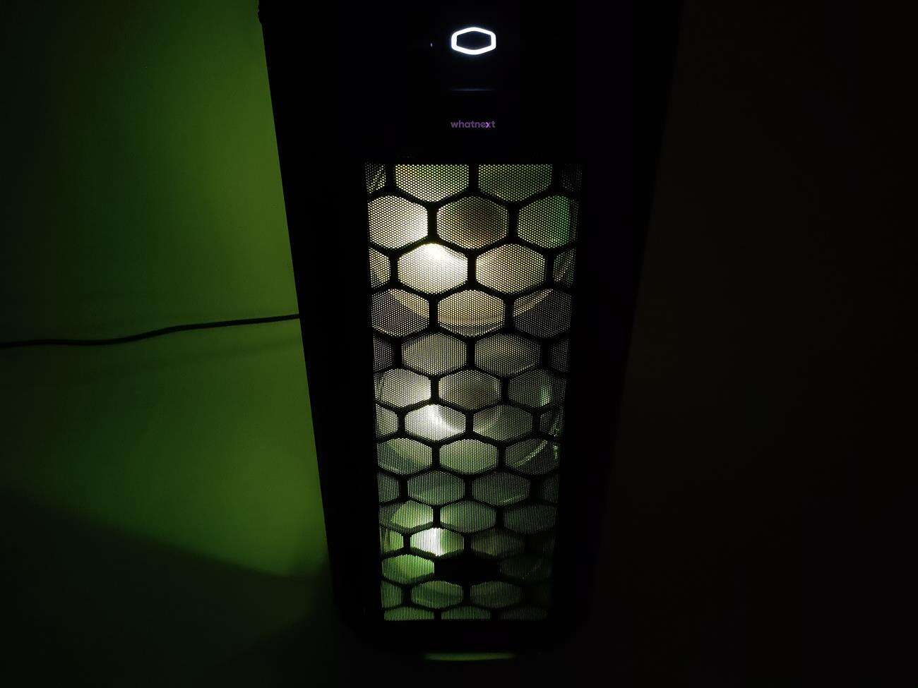 Ten jest całkowicie inny, choć dalej jest wykonany z siatki mesh. Tym razem jednak po bokach i na dole znajdują się dodatkowe ofiltrowane otwory. Filtry można wyjąć i wyczyścić, co jest sporym plusem. Po zdjęciu panelu widoczne są trzy wentylatory ARGB – całość naprawdę nieźle wygląda. Poza tym pozostałe części zewnętrznego wyglądu są identyczne jak u poprzednika. No może z wyjątkiem koloru – tym razem mamy do czynienia z czarną obudową.