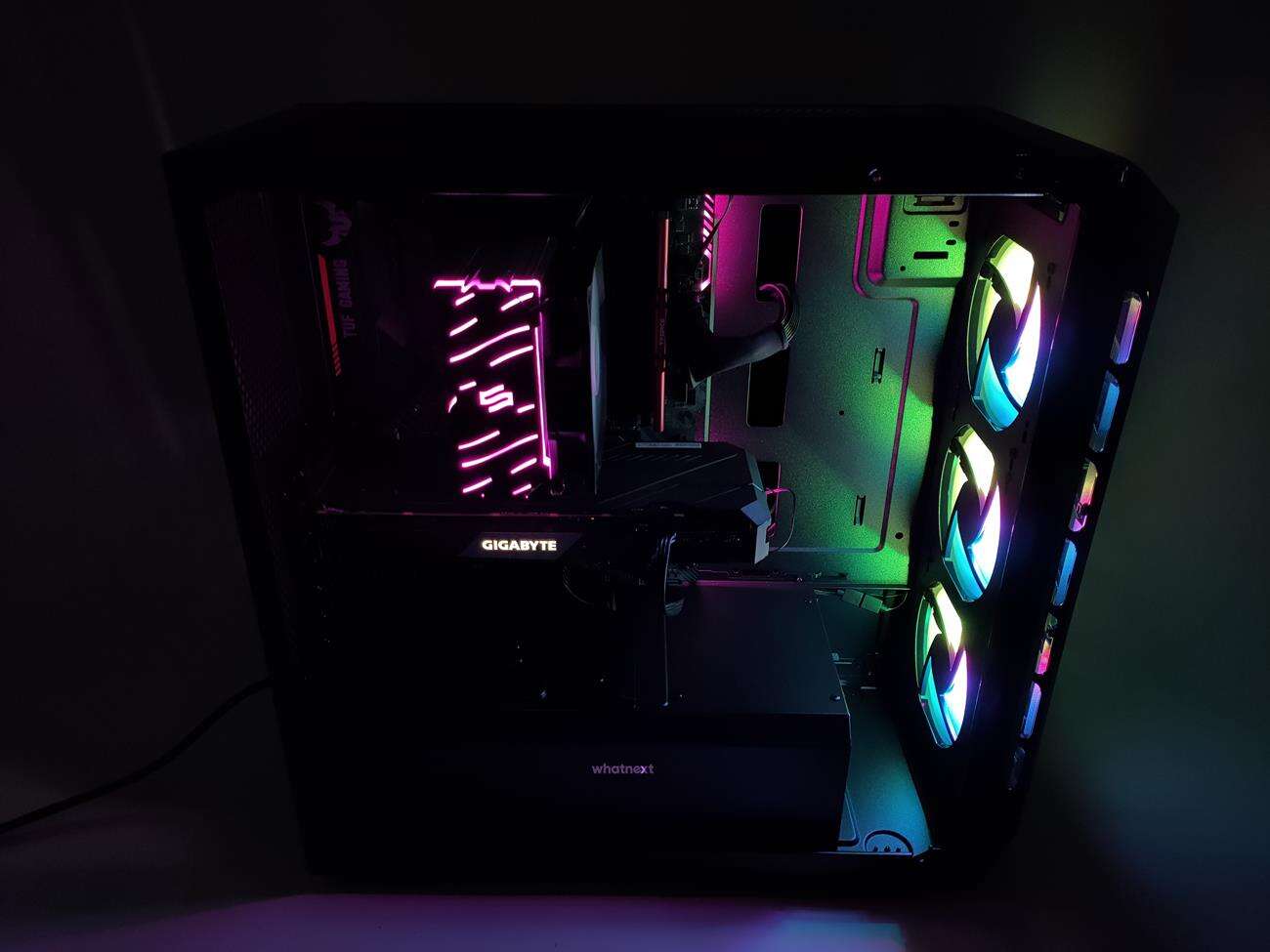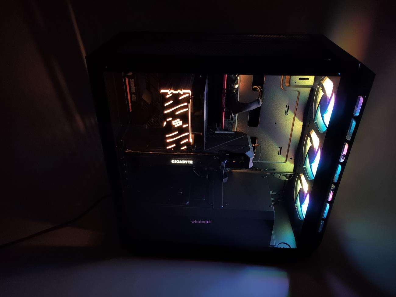 Z ważniejszych rzeczy wspomnę jeszcze o obecności kontrolera ARGB, który możecie podłączyć do przycisku reset albo bezpośrednio z niego sterować podświetleniem. W obudowie zmieścicie też karty graficzne do 410 mm i chłodzenia procesora do 165 mm. jest też miejsce z przodu i na górze na radiator 360 mm.