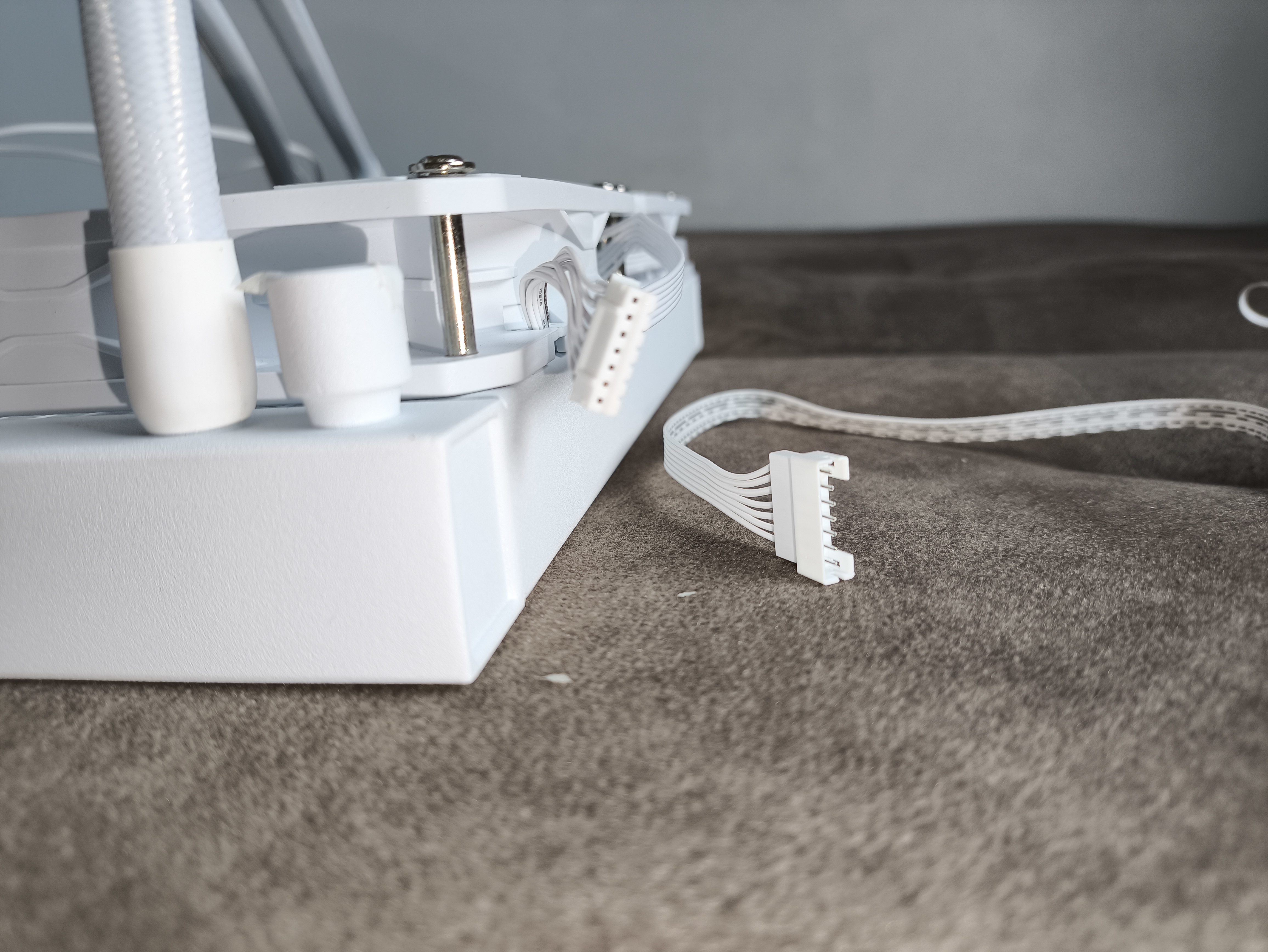 Oba wentylatory są połączone szeregowo (daisy-chain) i korzystają z firmowego złącza Cooler Master. Niestety, takie rozwiązanie ma swoje minusy – w razie awarii jednego wentylatora nie da się go łatwo wymienić bez zastosowania dodatkowych adapterów lub bezpośredniego podłączenia do płyty głównej.