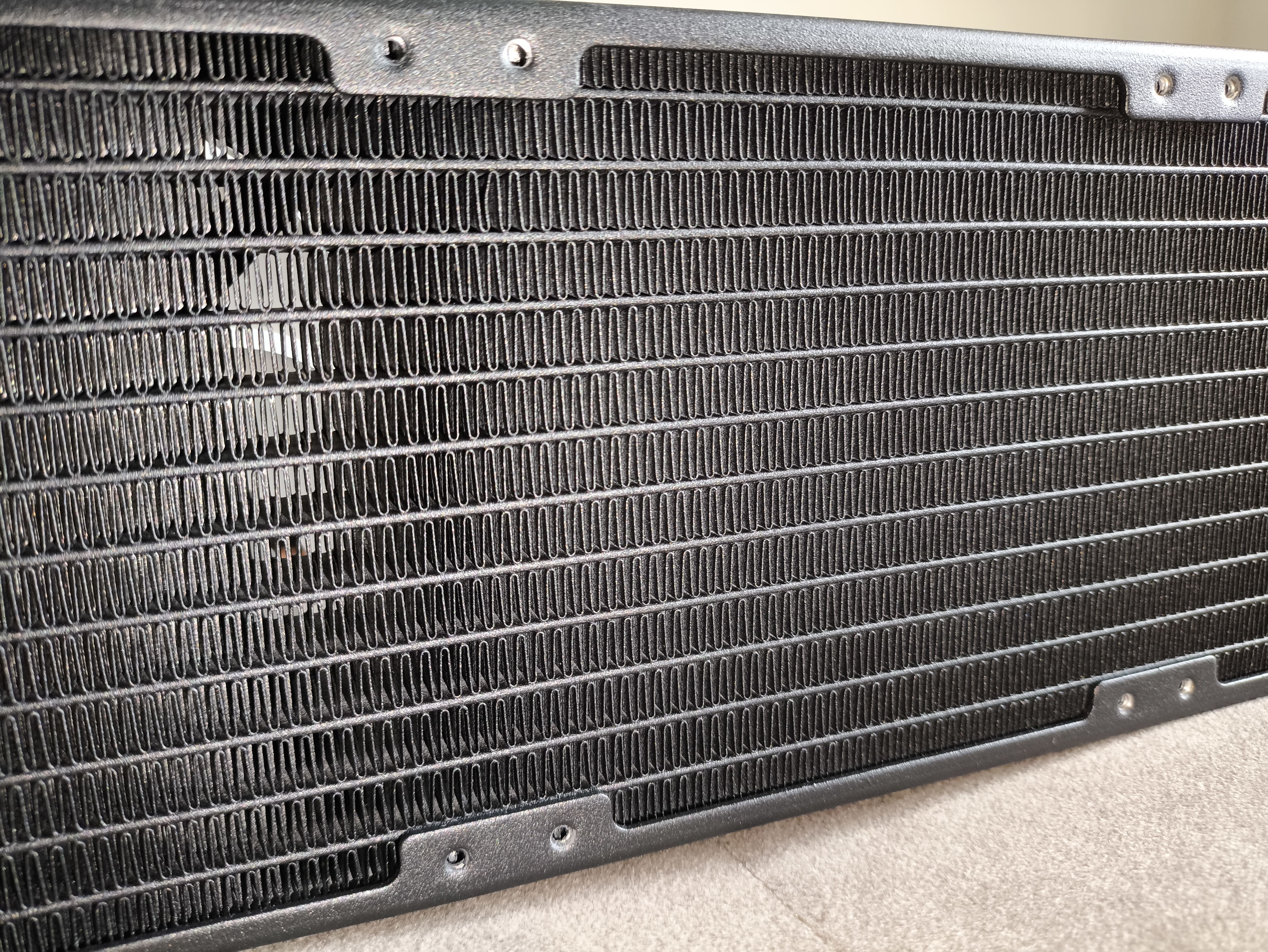 Gęstość użebrowania samego radiatora wynosi 22 FPI, co oznacza, że do efektywnego działania wymagane są wentylatory o wysokim ciśnieniu statycznym. Żadne z żeber nie są wygięte ani wciśnięte, a ogólna jakość wykonania prezentuje się bardzo dobrze.