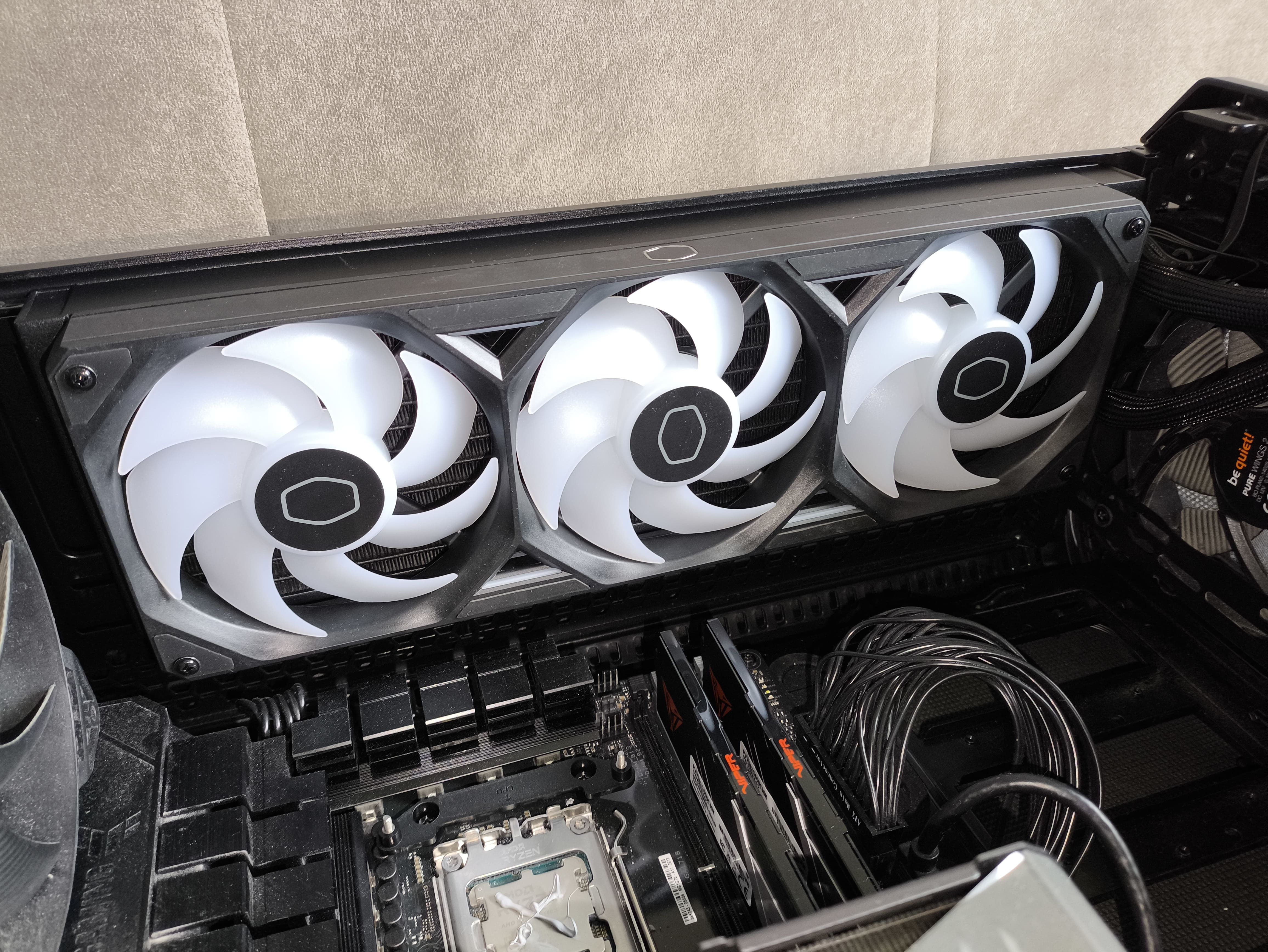 Testowane dziś chłodzenie wyposażone jest w trzy, zintegrowane w całość, wentylatory z serii Cooler Master SickleFlow Edge 120 mm.
