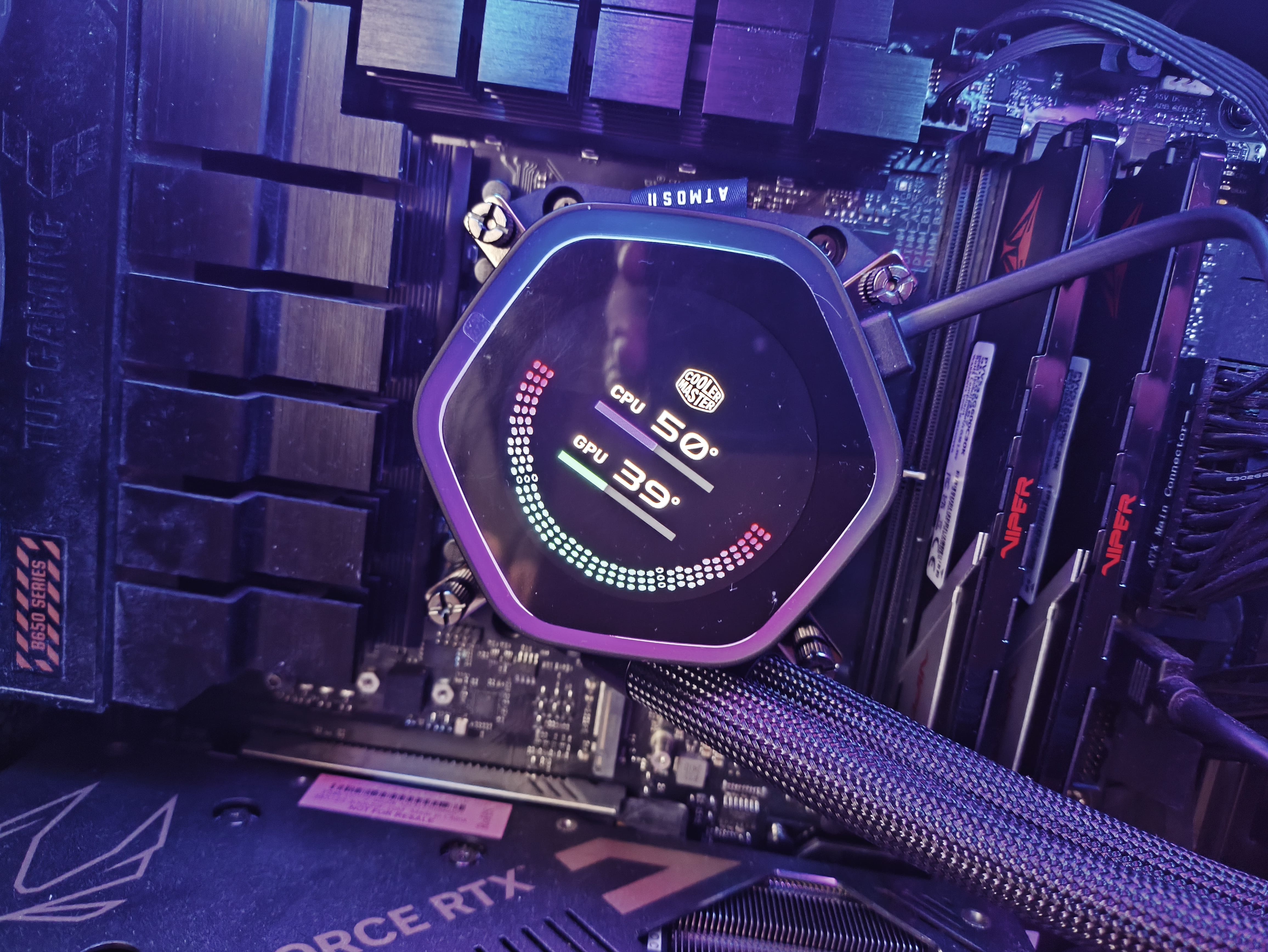 Spośród testowanych przeze mnie wariantów pokryw, najbardziej wyróżniają się wersje LCD i LED Pixel. Wentylator VRM to ciekawy pomysł, choć w moich testach nie wpłynął zauważalnie na temperatury. Moją faworytką pozostaje wersja LCD – jej 2,1-calowy, okrągły wyświetlacz o rozdzielczości 480 x 480 pikseli można w pełni dostosować dzięki oprogramowaniu Cooler Master MasterCTRL. Na ekranie można wyświetlać informacje o systemie (temperatura CPU, obciążenie, itp.), odtwarzać pliki multimedialne, przewijać tekst, pokazywać zegar, a nawet uruchomić karuzelę łączącą te tryby w cyklu.