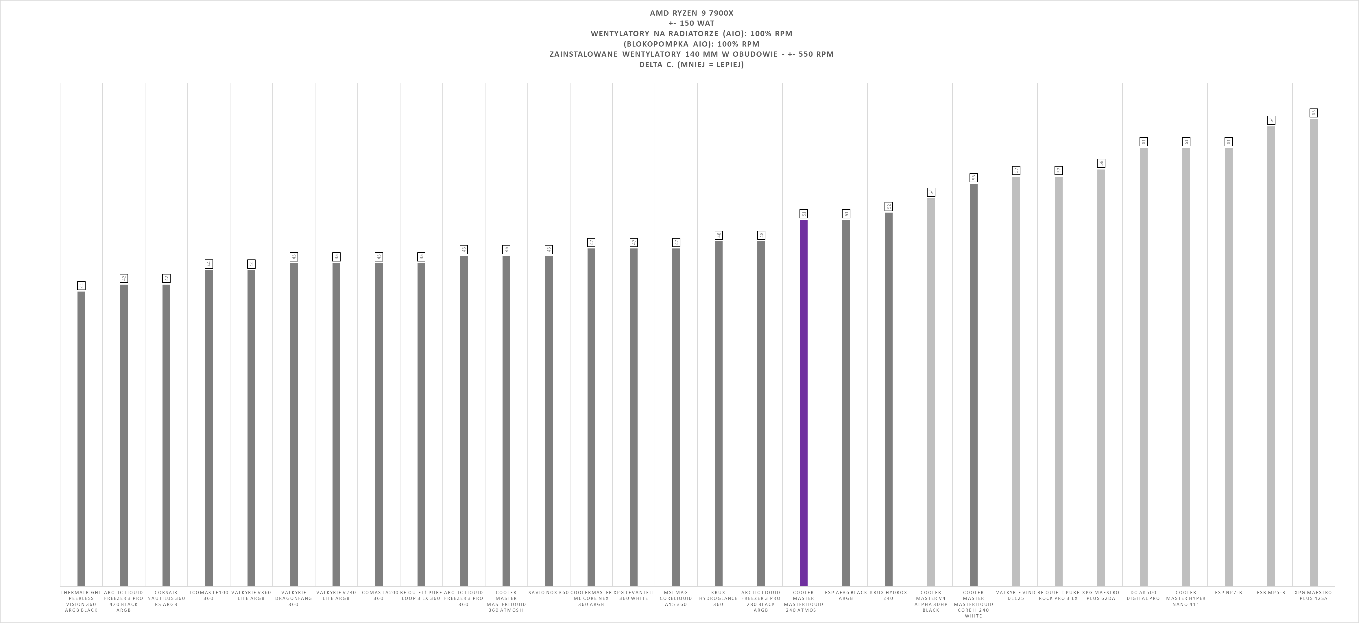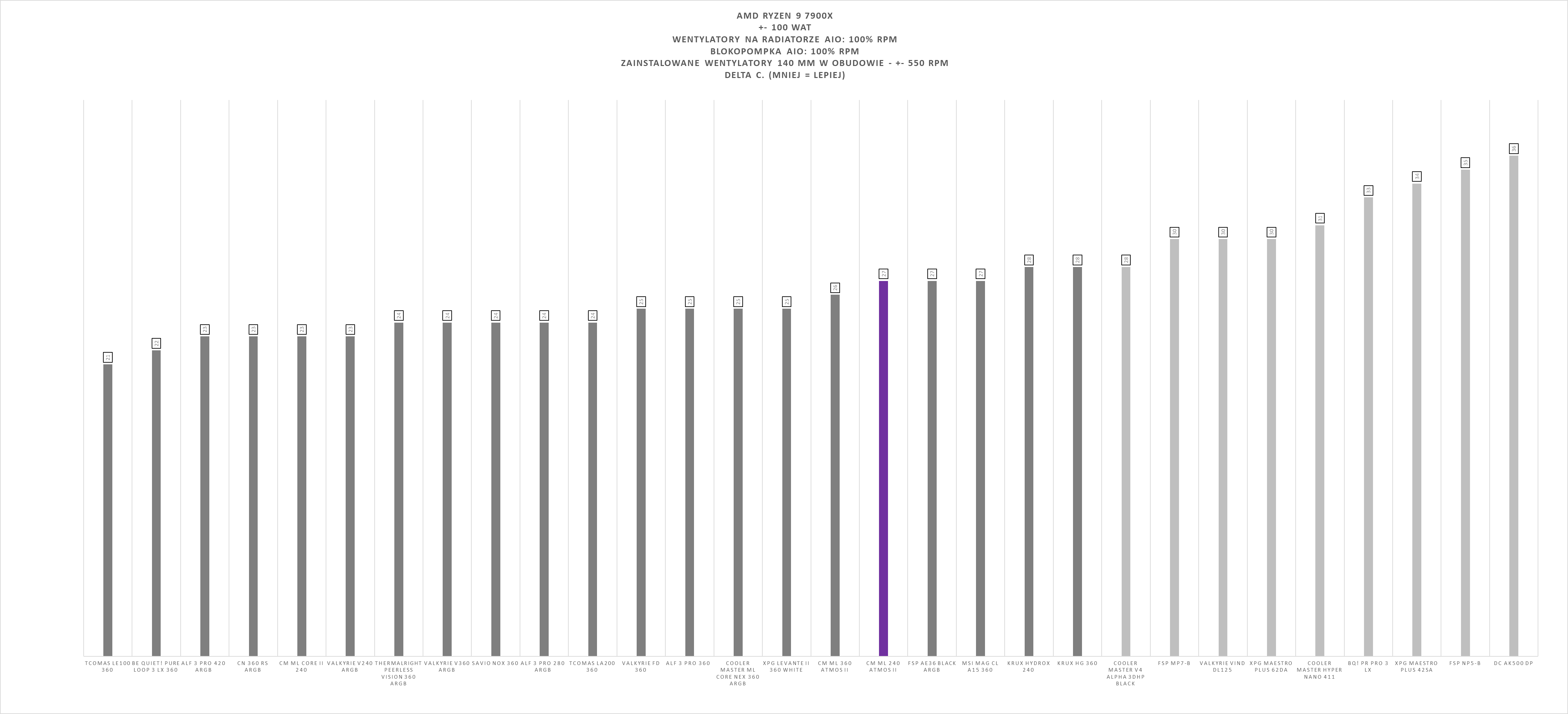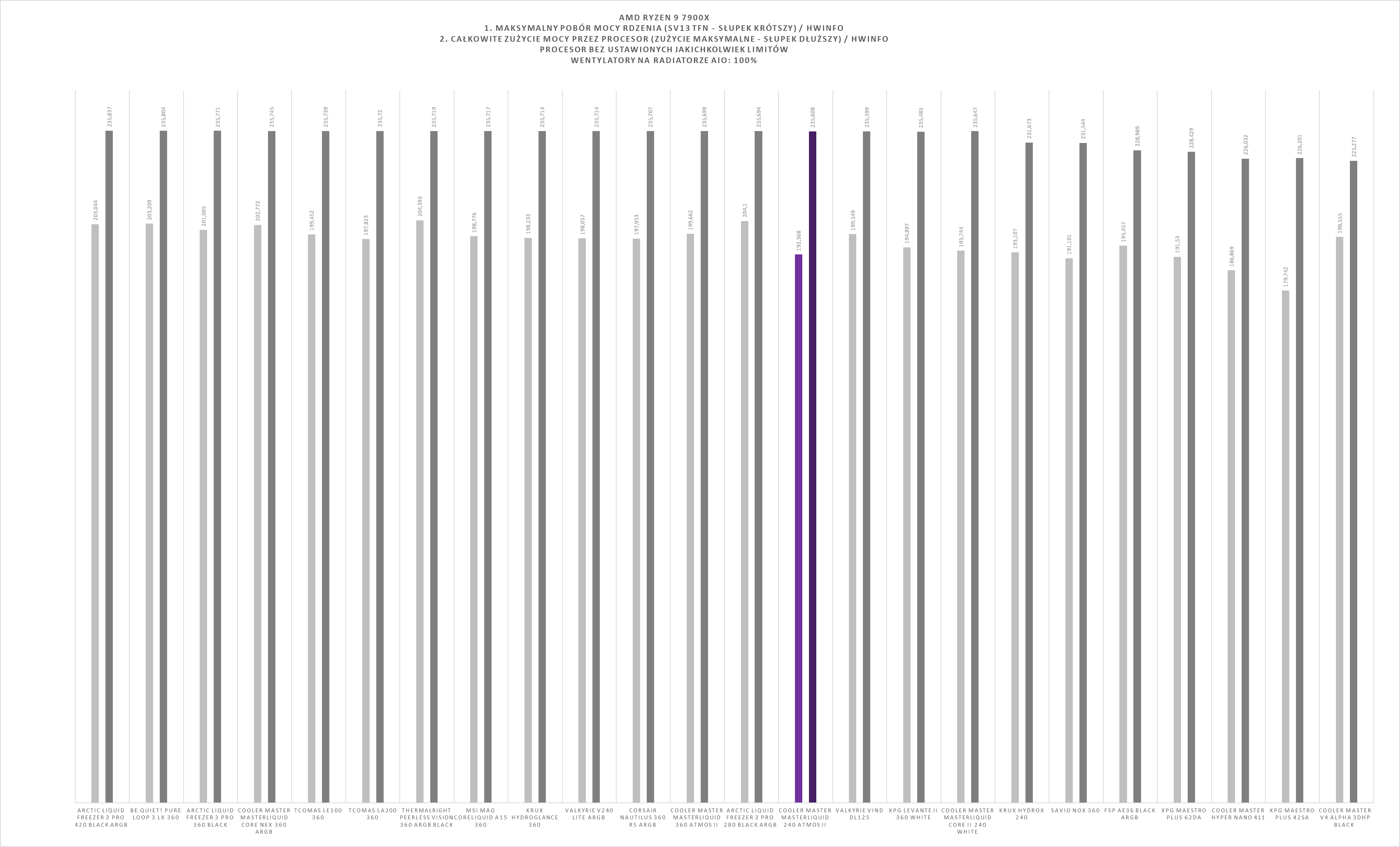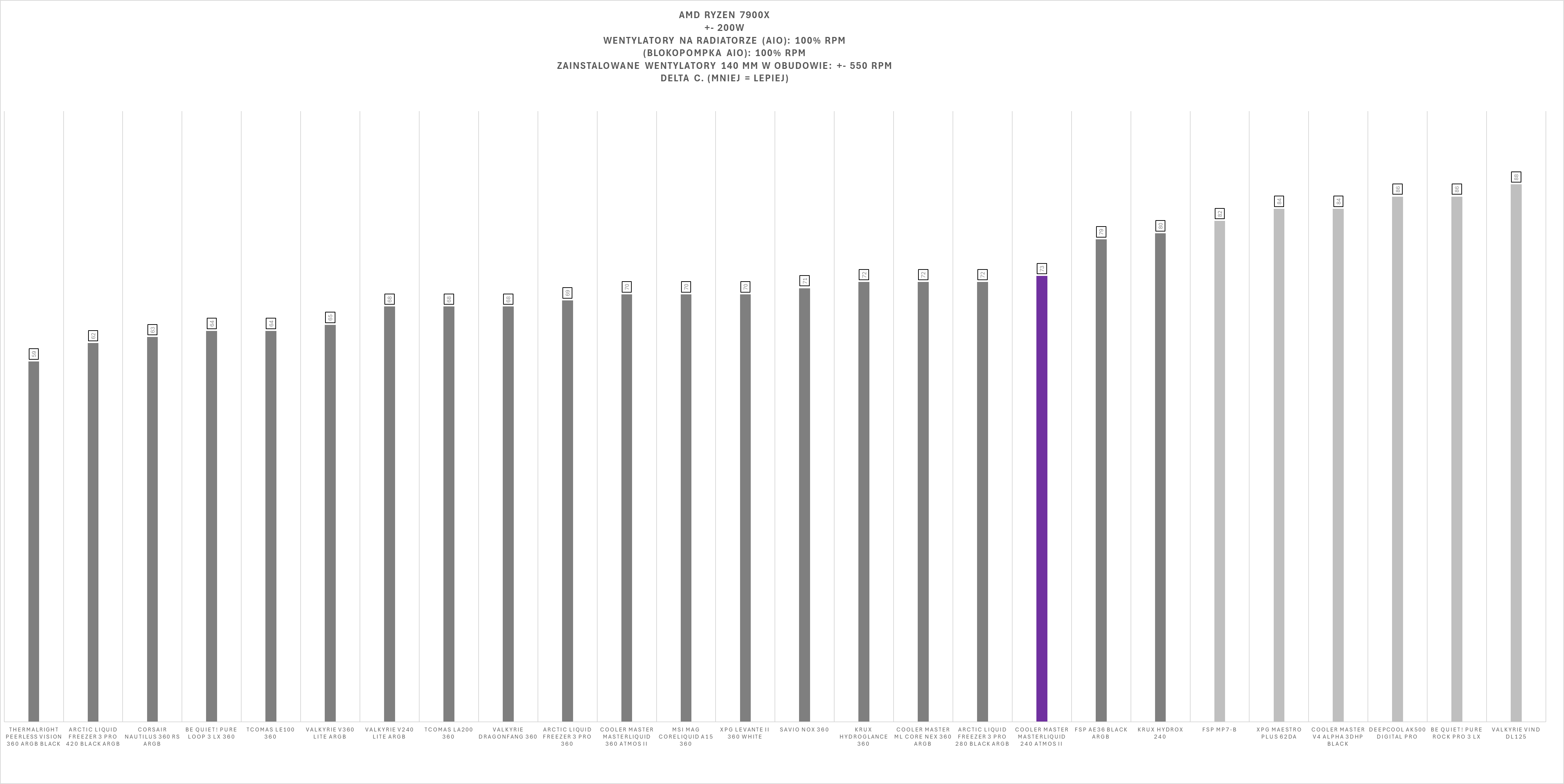 Jeśli spojrzeć na wyniki syntetycznie, Atmos II 240 lokuje się w górnej części wśród innych chłodzeń typu 240 mm Warto jednak zaznaczyć, że absolutna czołówka (360 / 420 mm) utrzymuje dużą przewagę, natomiast kolejne pozycje bardzo się do siebie zbliżają, tworząc wyraźnie spłaszczony segment wydajnościowy. W praktyce oznacza to, że różnice między wieloma modelami są niewielkie i często trudne do odczucia poza pomiarami.