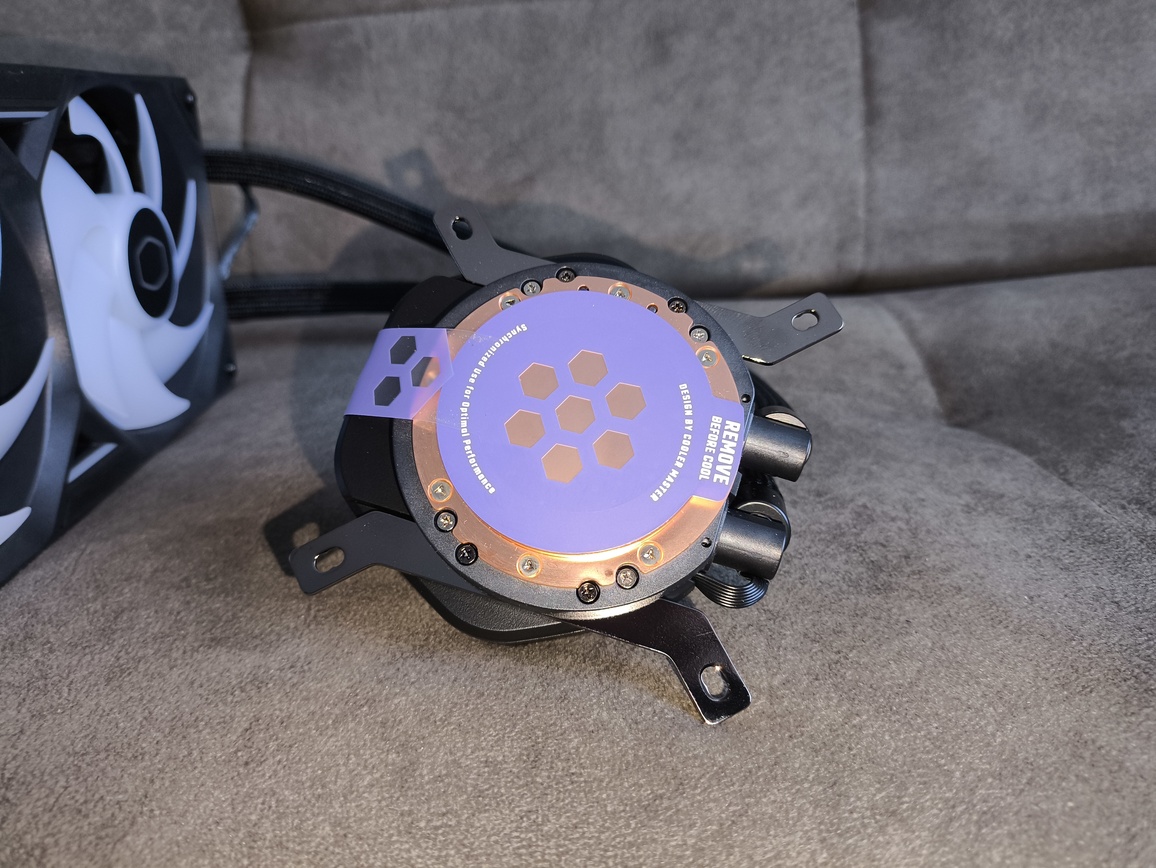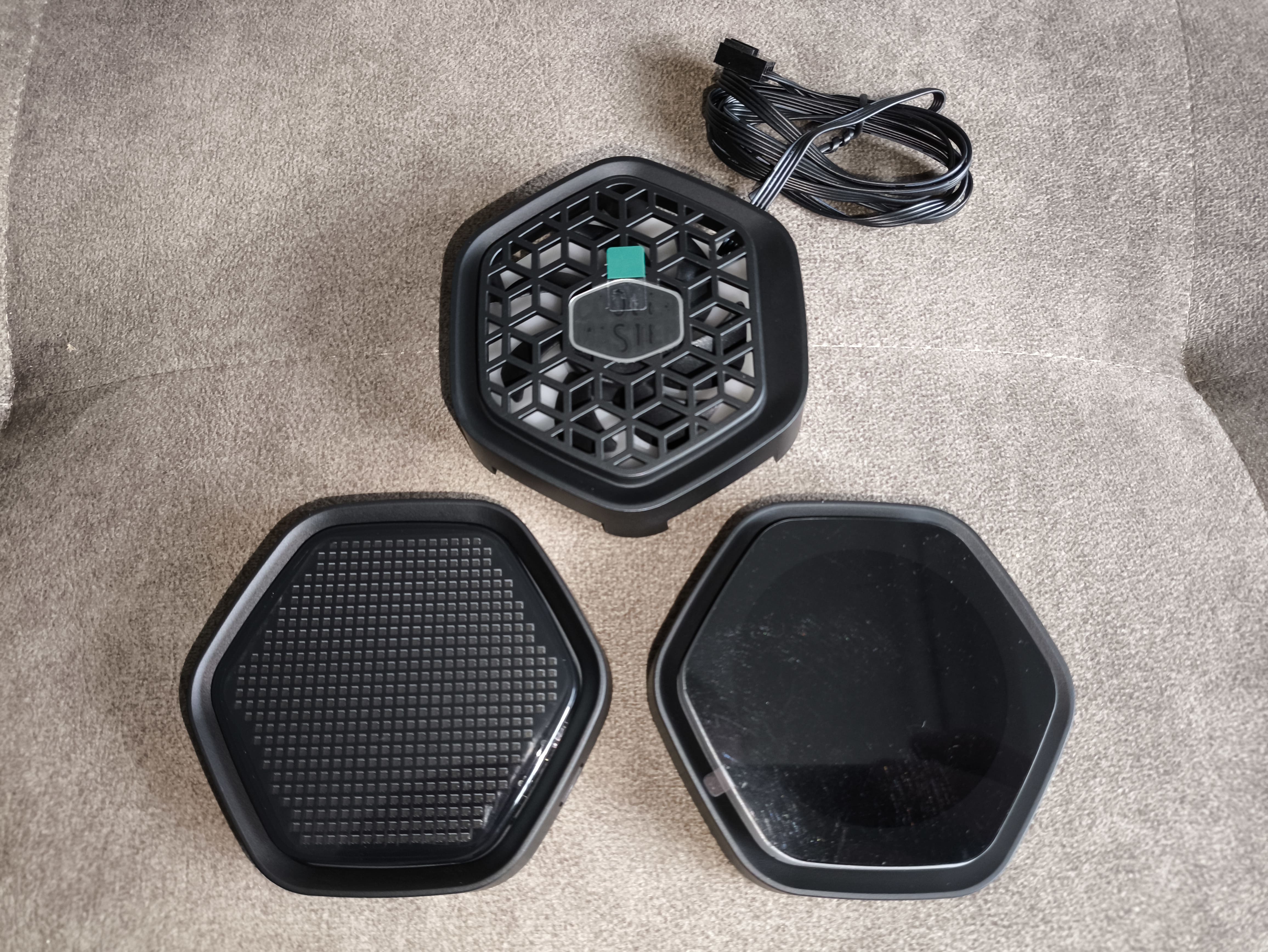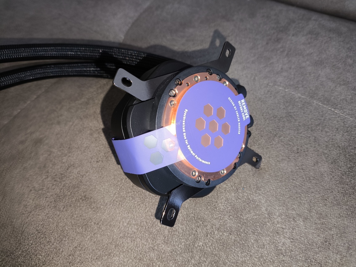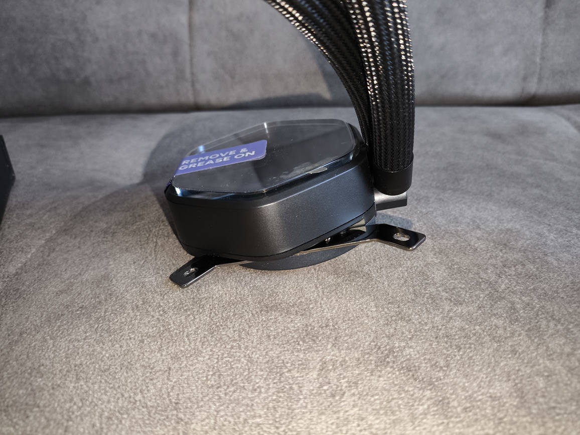 Konstrukcja dostarczana jest z fabrycznie zintegrowanym systemem montażowym, ukrytym pod zewnętrznym pierścieniem obudowy. Górną część przykrywa efektowna osłona typu „infinity mirror” z podświetlanym logo producenta. Na jej powierzchni znajdziemy również oznaczenie przypominające o konieczności usunięcia warstwy ochronnej i nałożenia pasty – rozwiązanie proste, ale praktyczne.