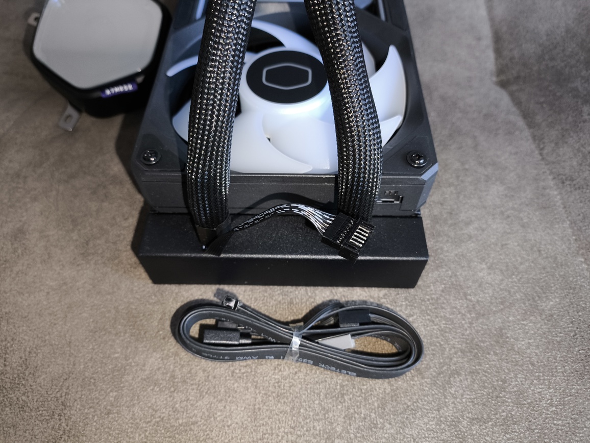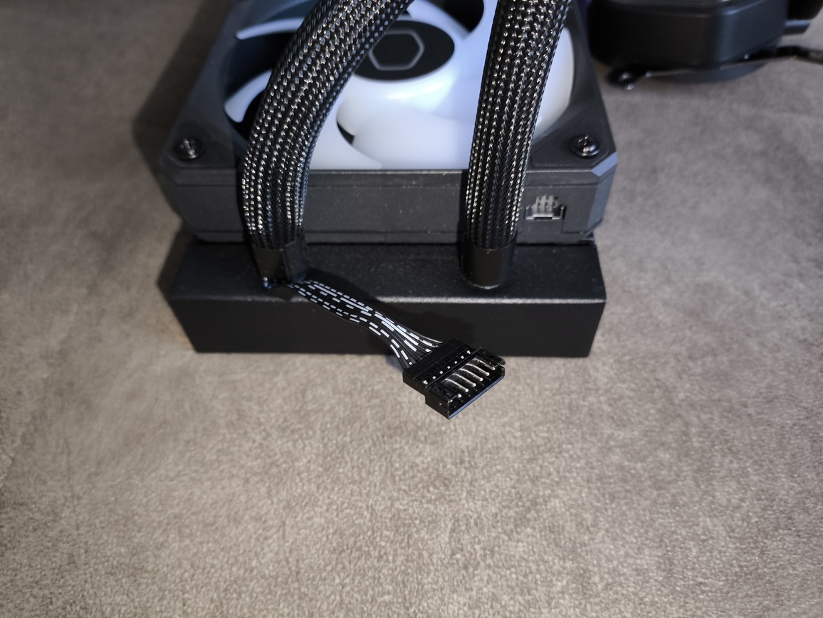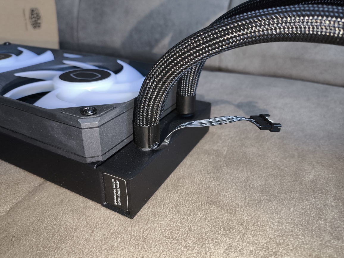 Na plus należy zaliczyć również długość przewodów łączących blok z chłodnicą. 400 mm daje dużą swobodę podczas montażu, szczególnie w większych obudowach. Same połączenia zabezpieczono estetycznymi obejmami, które poprawiają zarówno trwałość, jak i odbiór wizualny całego zestawu.