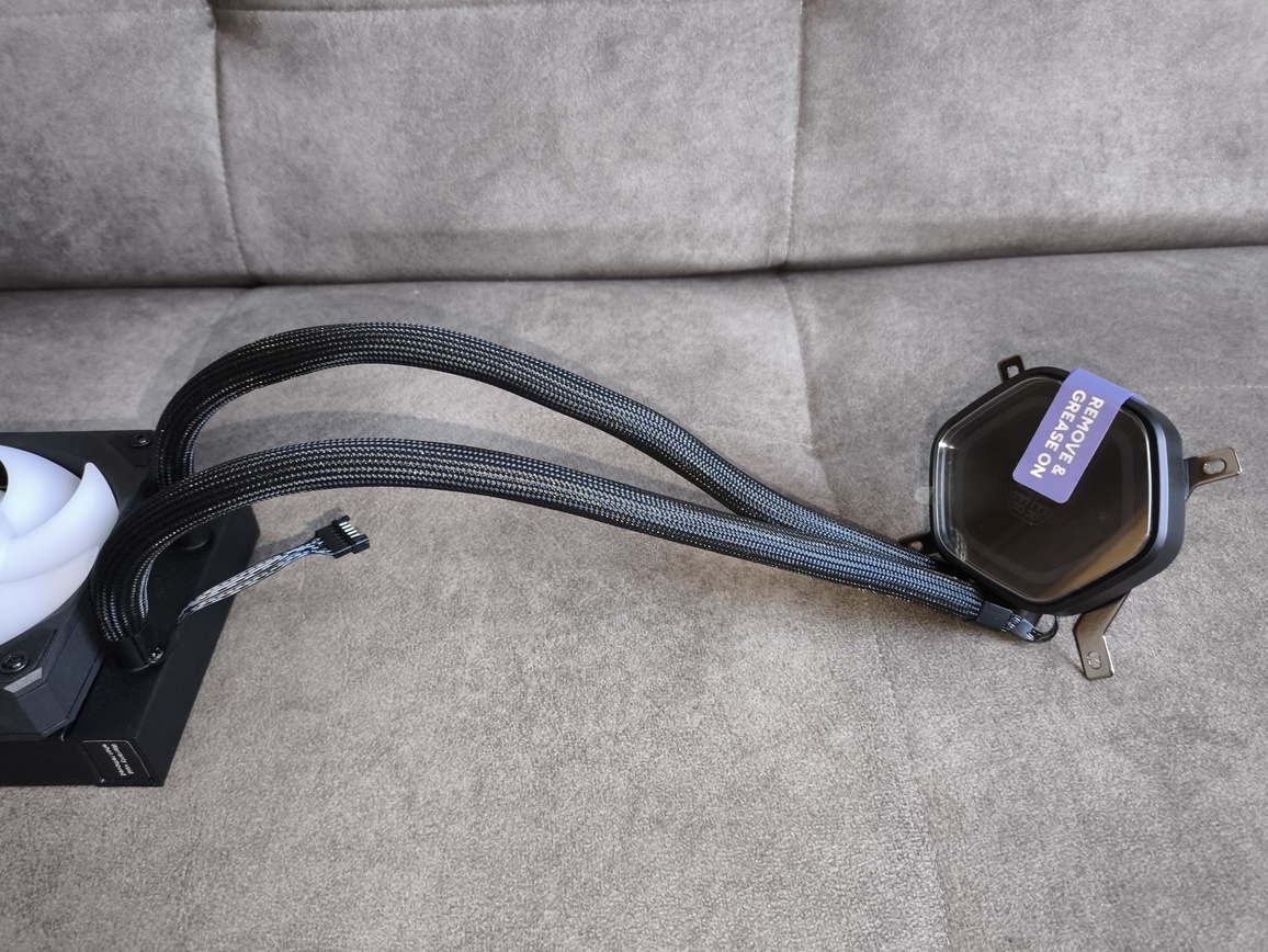 W praktyce montaż nie sprawia większych trudności. Nawet w przypadku większych konstrukcji, takich jak moja prywatna obudowa be quiet! Silent Base 802, długość przewodów oraz węży okazuje się w pełni wystarczająca, co pozwala na swobodne prowadzenie okablowania i bezproblemowe dopasowanie układu.