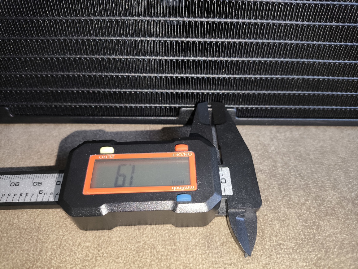 Zastosowane zagęszczenie finów na poziomie 22 FPI wskazuje na konstrukcję nastawioną na wysoką wydajność, ale jednocześnie wymagającą odpowiedniego przepływu powietrza i sensownego ciśnienia statycznego ze strony wentylatorów. Jakość wykonania radiatora nie budzi zastrzeżeń – żebra są równe, bez deformacji, a całość sprawia solidne wrażenie.