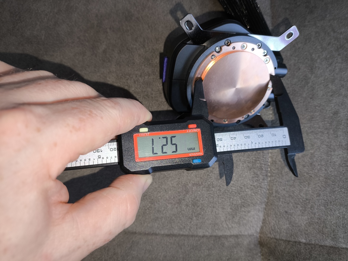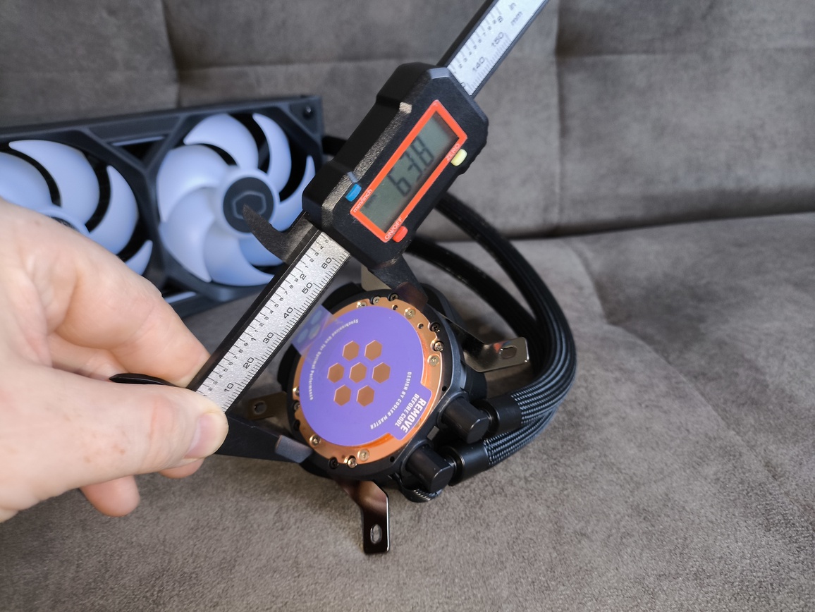 W odświeżonej wersji Cooler Master MasterLiquid Atmos II blokopompka została wyraźnie przeprojektowana pod kątem kompaktowości. Jej wysokość ograniczono do zaledwie 38 mm (wcześniej ponad 50 mm), przy zachowaniu wymiarów podstawy na poziomie około 92,5 × 87 mm. Przekłada się to nie tylko na większą kompatybilność z różnymi konfiguracjami, ale również na niższe zużycie energii oraz spokojniejszą, mniej inwazyjną akustycznie pracę. Maksymalna prędkość obrotowa oscyluje w okolicach 3400 RPM (±300).