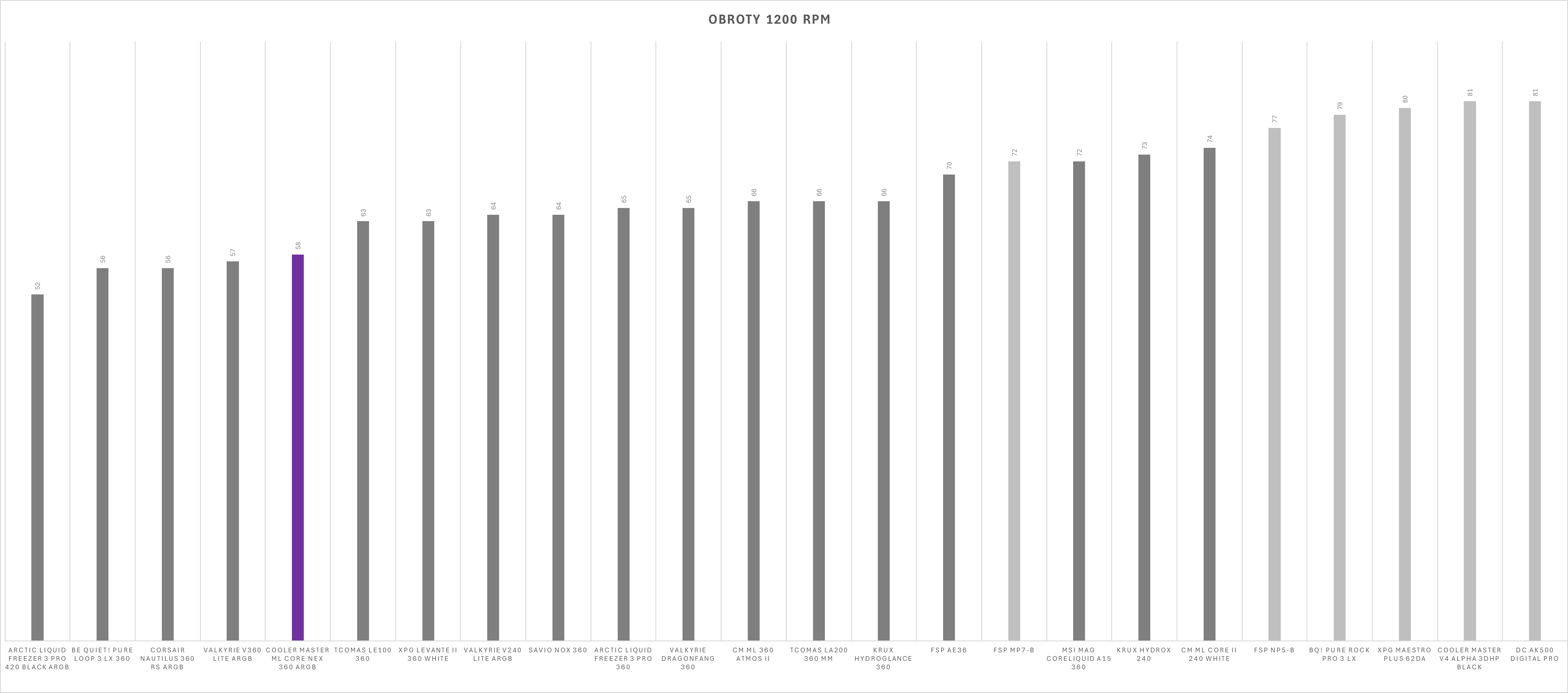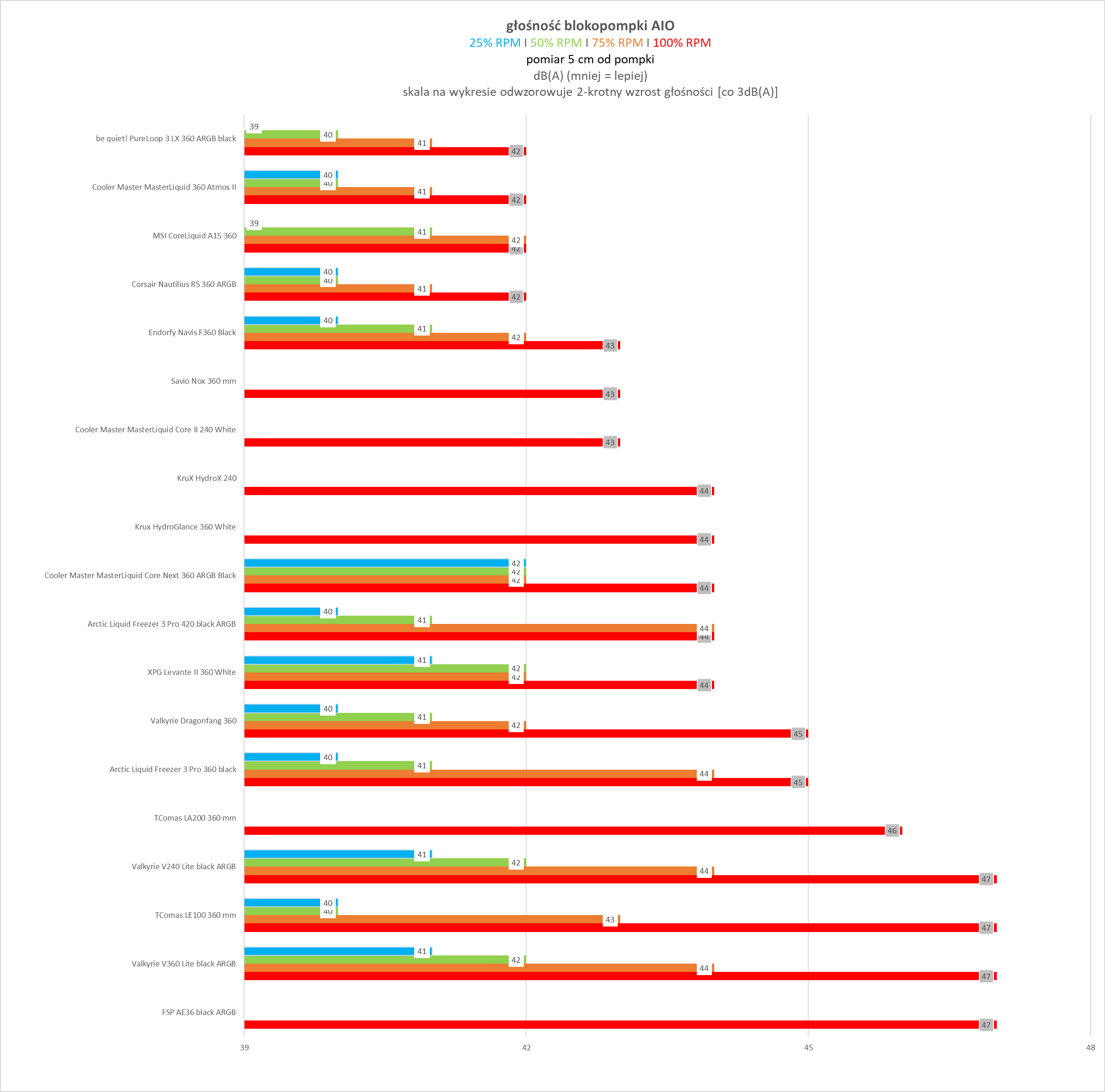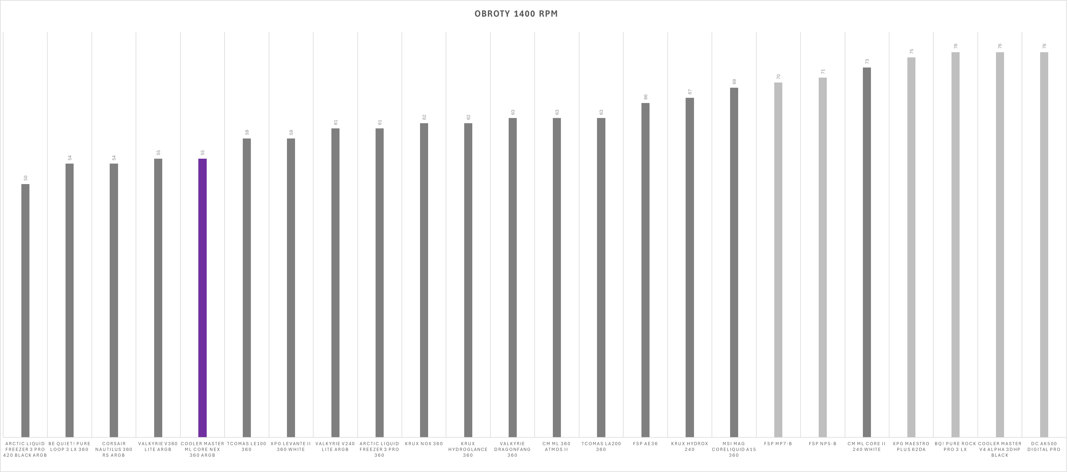 Ta wypada co najwyżej przeciętnie. Na najwyższych obrotach chłodzenie jest bardzo głośne. Przyzwoity poziom głośności jest osiągany dopiero przy skręceniu obrotów do 65% minimum. Ale odbywa się to kosztem temperatur niestety. Coś za coś niestety.