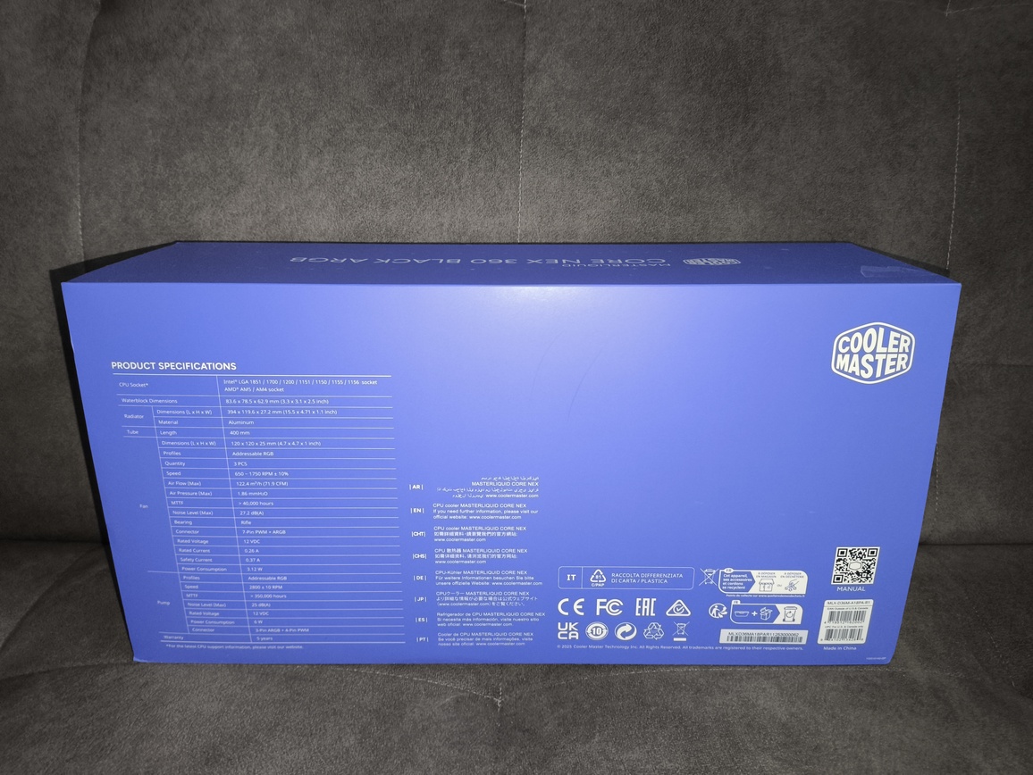 Karton utrzymano w stonowanej, klasycznej dla tej marki kolorystyce, z subtelnym akcentem ARGB na froncie oraz czytelnym zestawieniem najważniejszych informacji technicznych. Nie ma tu przesadnego marketingowego przepychu — projekt jest schludny i przejrzysty. Niemniej od razu widać, że to produkt od Cooler Mastera.