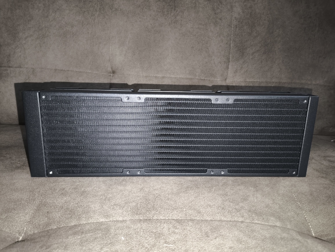 Jednostka 360 mm oparta została na aluminiowym radiatorze o wymiarach 397 x 120 x 27 mm. zachowującym klasyczną grubość 27 mm, co oznacza wysoką kompatybilność z większością nowoczesnych obudów bez problemów z kolizją z płytą główną czy sekcją VRM. Ogólnie całkowita grubość zestawu po zamontowaniu wentylatorów wynosi 53,2 mm (z uwzględnieniem główek śrub mocujących).
