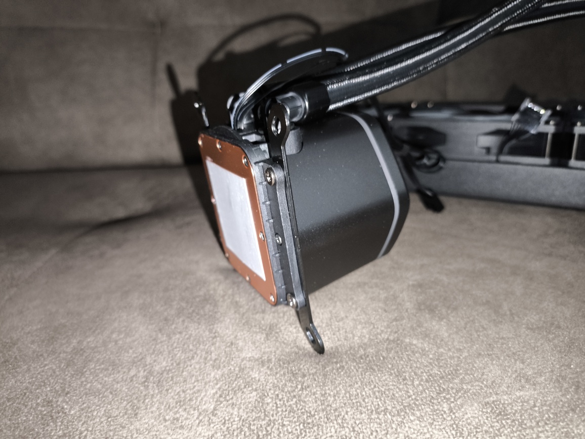 Podstawa typu coldplate wyposażona została w gęste mikro-kanały, co zwiększa powierzchnię kontaktu z cieczą i poprawia transfer energii cieplnej z IHS procesora. Fabrycznie nałożona pasta pozwala na natychmiastowy montaż bez konieczności stosowania własnego preparatu.