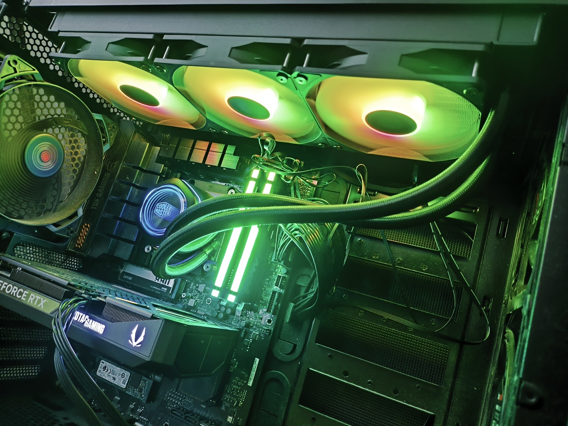 Wentylatory, choć też oferują wystarczające podświetlenie ARGB pod względem intensywności, na tle owej pompki wyglądają po prostu zwyczajnie. Ot, zwykłe podświetlenie ARGB. Nic nadto.