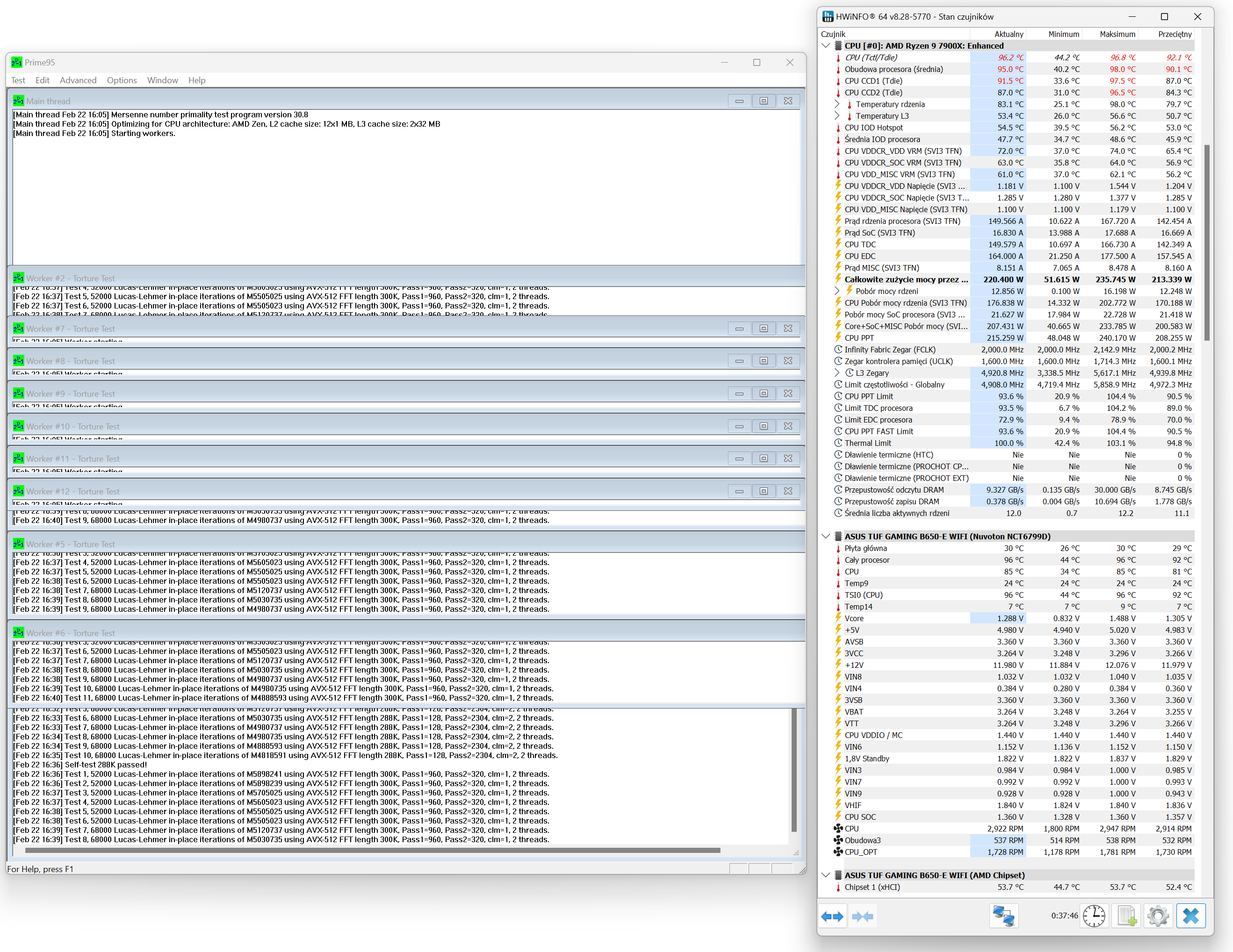 | Typ chłodzenia / TDP | wodne, 360 mm Ryzen 7000/9000: do 230 W Intel 14/15 gen: do 250 W (PL1/PL2) |