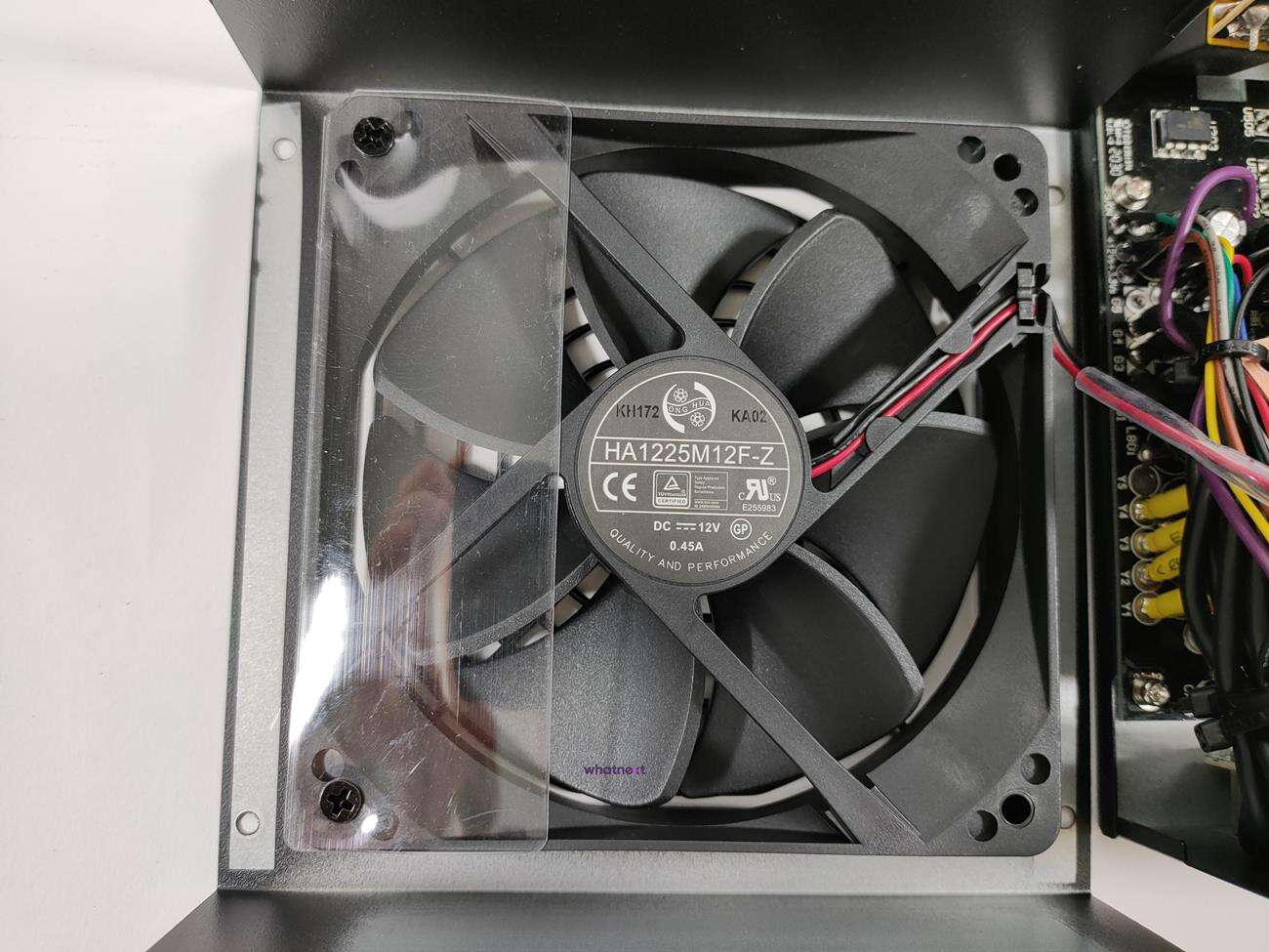 Za chłodzenie odpowiada 120 mm wentylator HA1225M12F-Z o prędkości 1500 RPM. Jego maksymalna głośność ma wynosi 24,9 dBA oraz 17,8 dBA przy 50% obciążeniu. Powinna więc to być stosunkowo cicha konstrukcja.