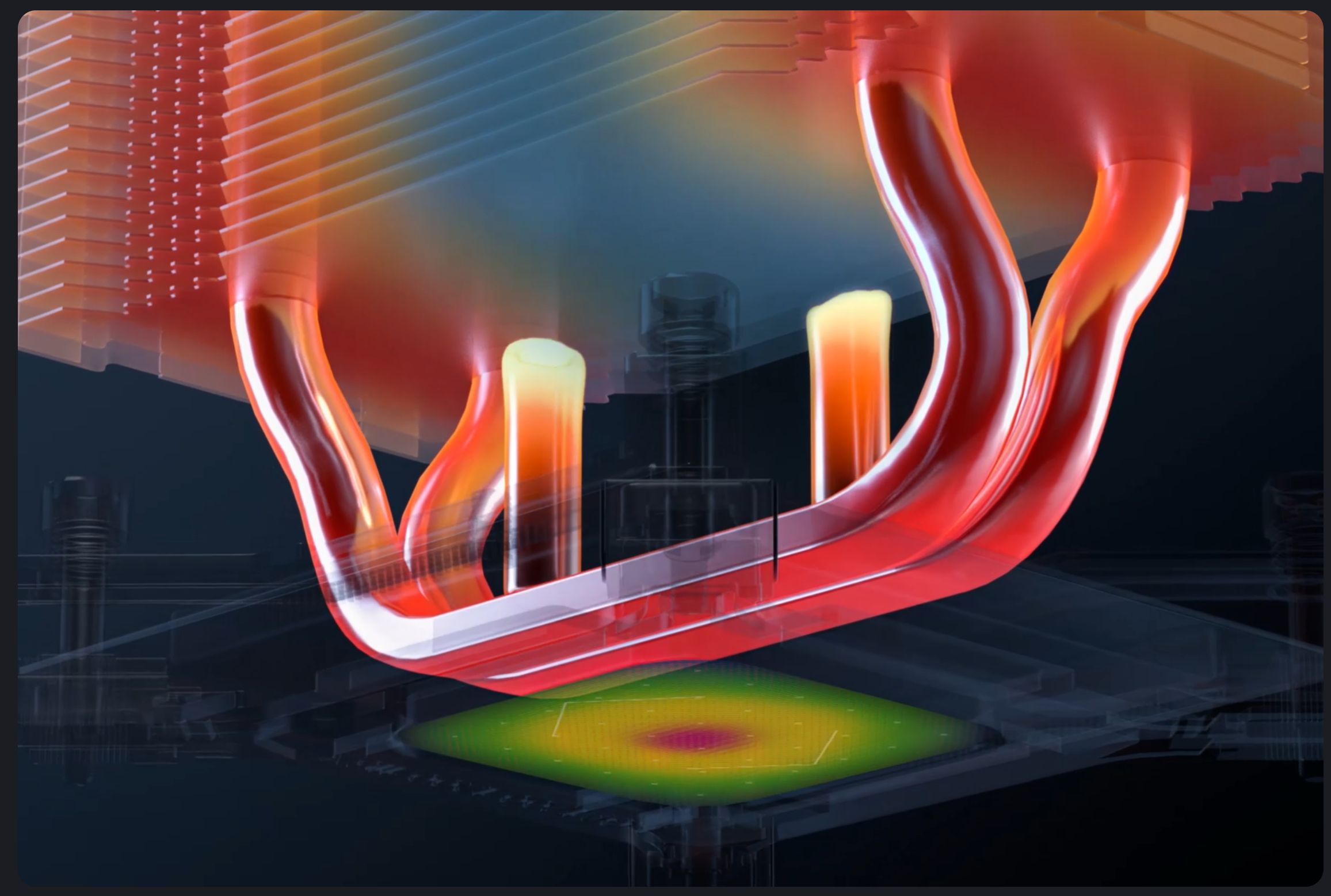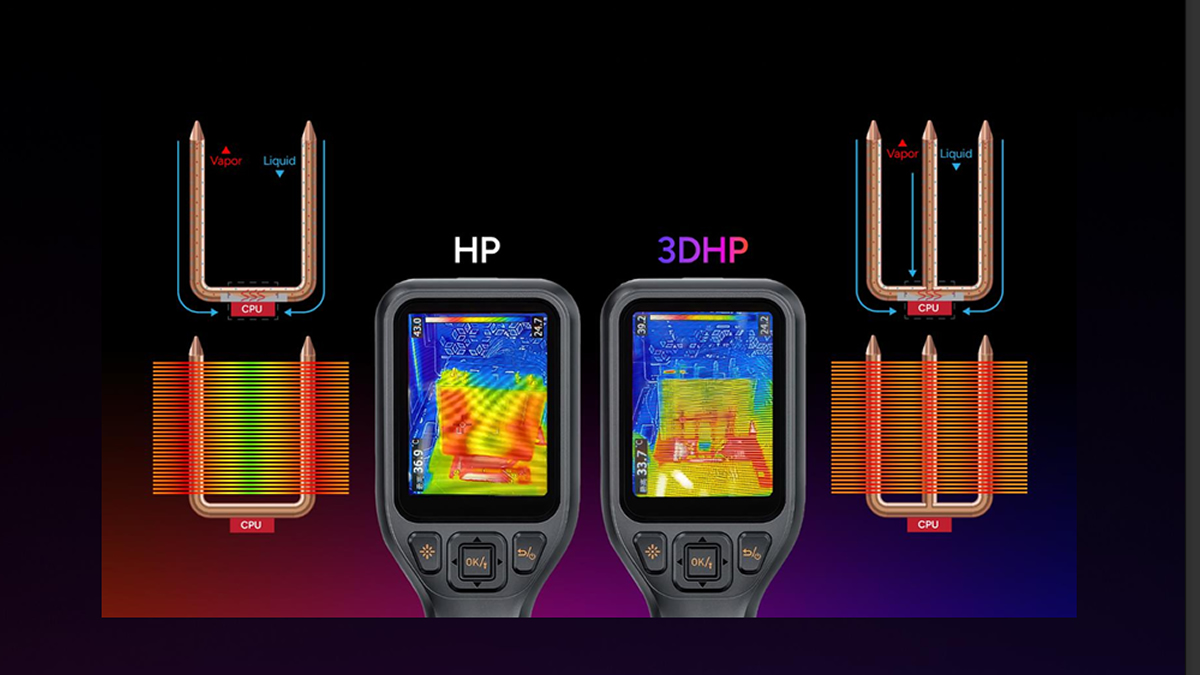 3DHP (3D Heat Pipes) wprowadza dodatkowy wymiar w projektowaniu rurek cieplnych. W przeciwieństwie do typowych układów w kształcie litery U, które omijają centralną część radiatora, tutaj ciepłowody przechodzą również przez środek wieży. Rozwiązanie to ma eliminować tzw. martwą strefę w rdzeniu radiatora, zwiększając efektywną powierzchnię oddawania ciepła. W teorii przekłada się to na sprawniejsze odprowadzanie energii cieplnej z procesora oraz stabilniejsze temperatury przy długotrwałym obciążeniu.