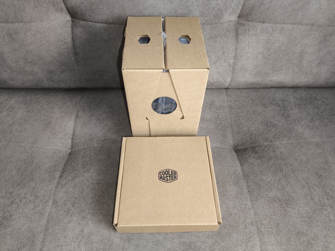 Po otwarciu pudełka widać, że producent zadbał o odpowiednie zabezpieczenie zawartości. Na samej górze znajduje się osobne pudełko z akcesoriami montażowymi. Poniżej umieszczono radiator owinięty w dodatkową, kartonową osłonę, która stabilizuje konstrukcję i chroni ją przed uszkodzeniami w transporcie. Całość zabezpieczono kilkoma warstwami kartonu, co – mimo braku piankowych form – skutecznie unieruchamia chłodzenie w opakowaniu.