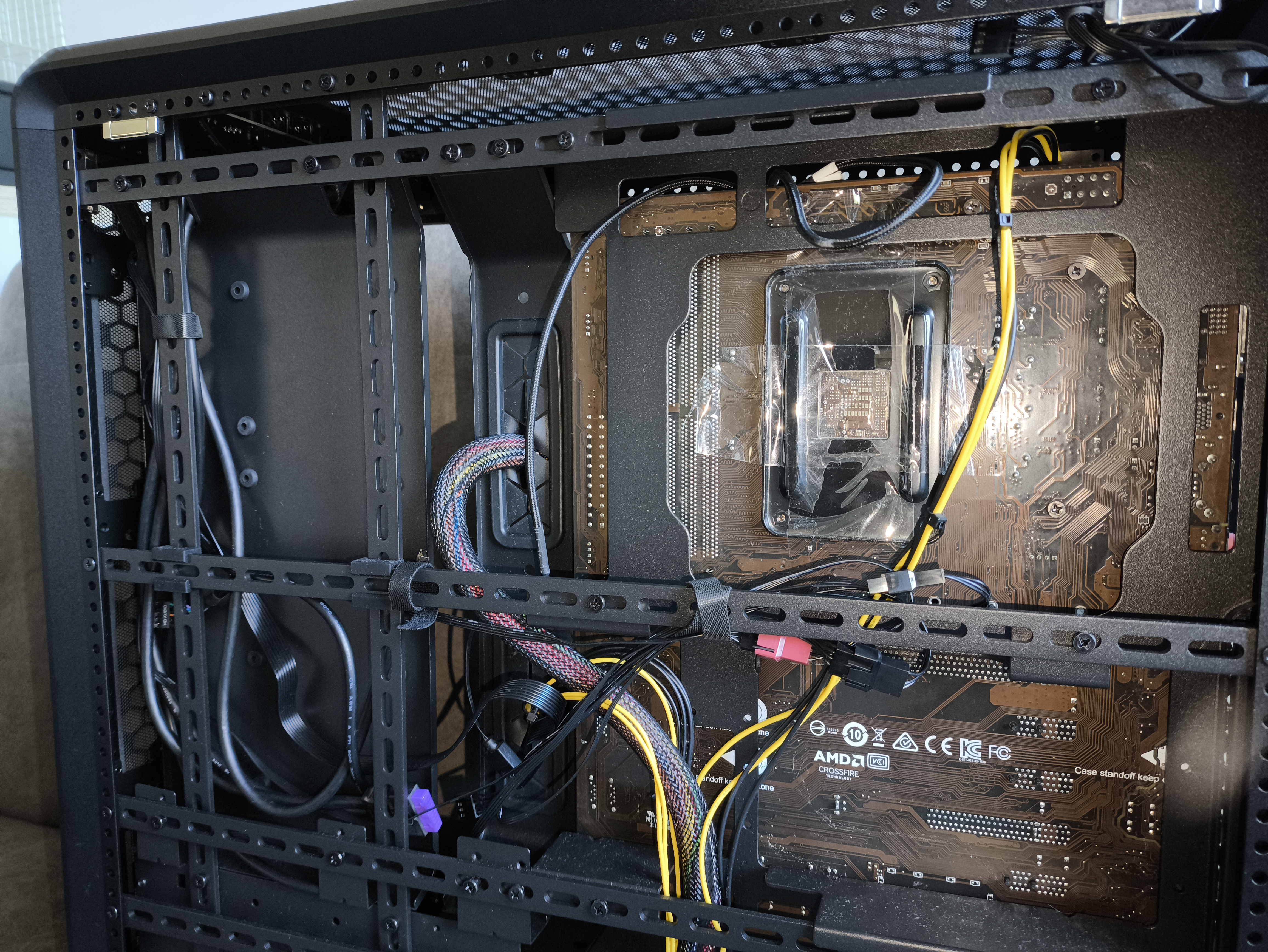 Za tacką płyty głównej producent przewidział około 35 mm przestrzeni na prowadzenie kabli, a w rejonie zatok dyskowych nieco mniej – +- 27 mm. To wystarczająco dużo, by swobodnie zmieścić nawet grubsze wiązki przewodów.