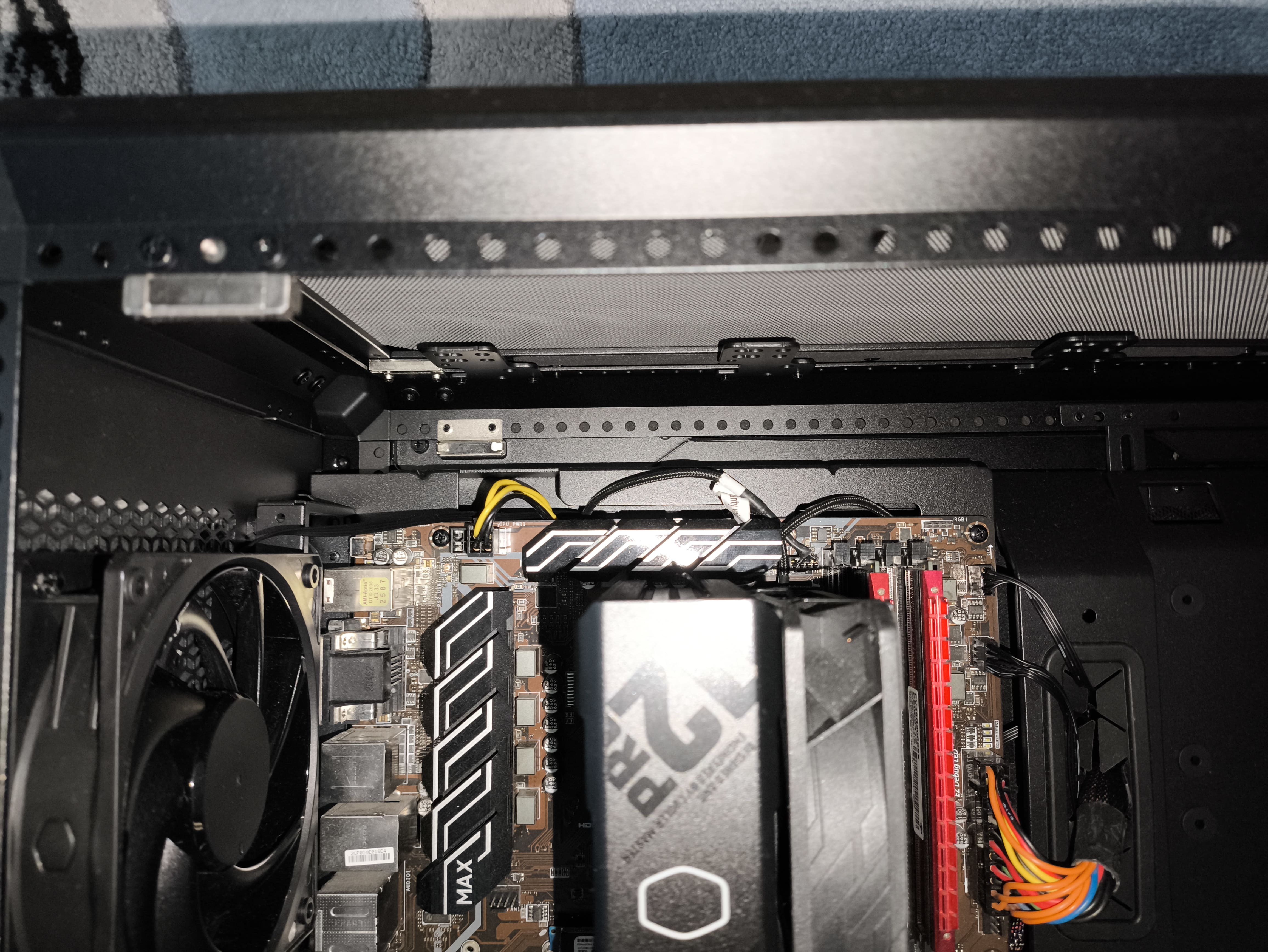 Po zamontowaniu wszystkich podzespołów możemy ponownie osadzić panel szklany. Całość przebiega bez większych problemów, choć da się odczuć, że MasterFrame 600 wymaga nieco więcej (no więcej niż nieco) cierpliwości niż standardowe obudowy typu tower.