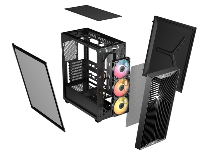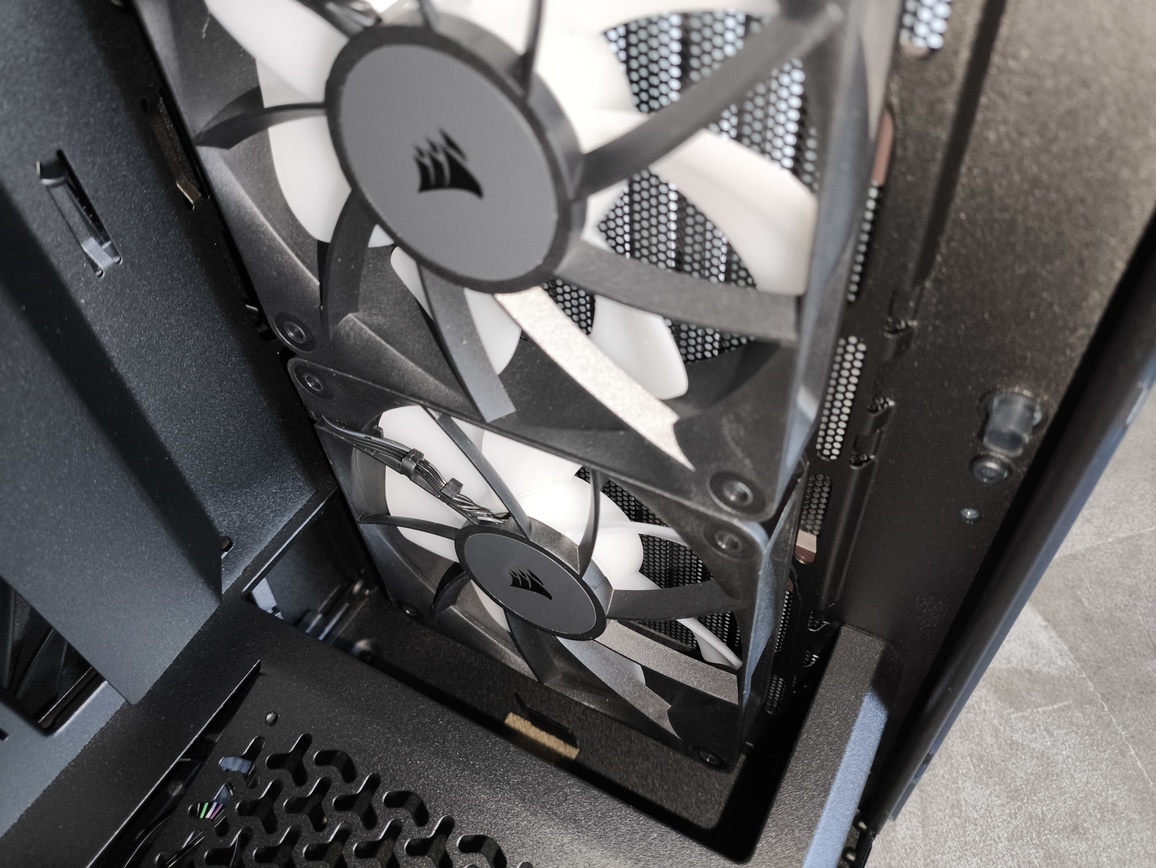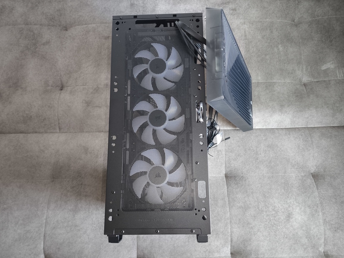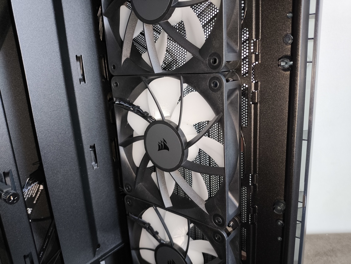 | Zainstalowane wentylatory | przód: 3x 120 mm Corsair RS120 PWM ARGB góra: – piwnica zasilacza: – tył: 1x 120 mm Corsair RS120 PWM ARGB |