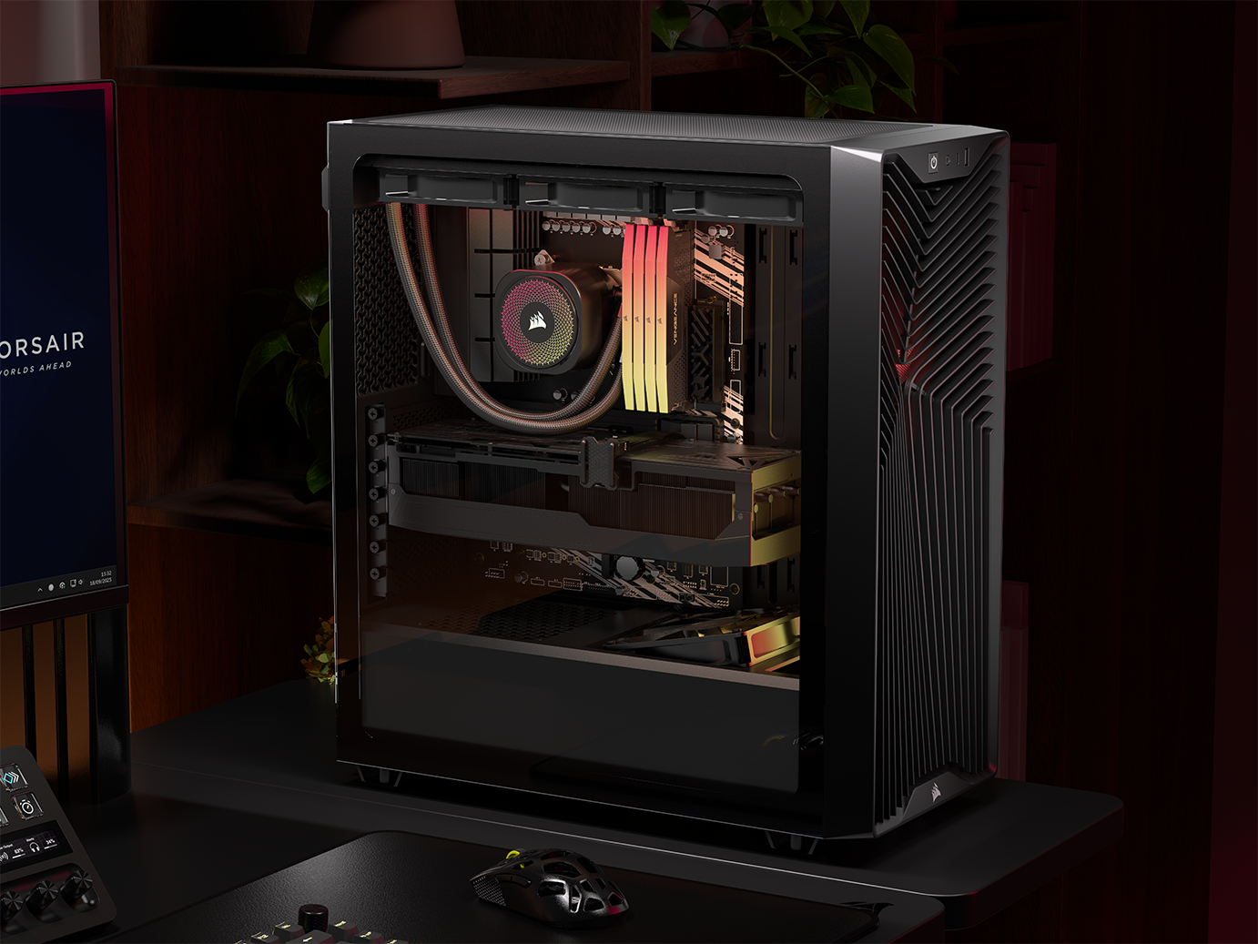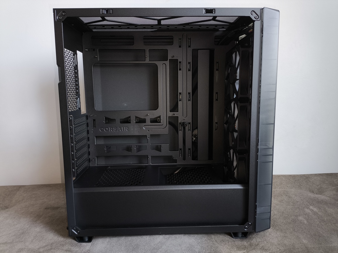Na górnej krawędzi frontu umieszczono panel I/O, natomiast w dolnej części znalazło się subtelne logo Corsair. Całość prezentuje się nowocześnie, choć przy bliższym przyjrzeniu się trudno nie zauważyć inspiracji innymi konstrukcjami.