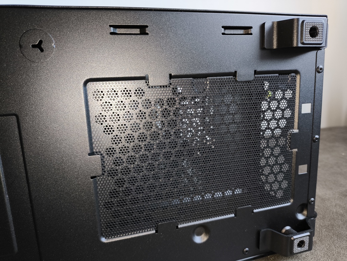 Wentylator tylny nie jest fabrycznie zainstalowany, co wpisuje się w filozofię obudowy polegającą na wykorzystaniu silnego przepływu powietrza przodem.