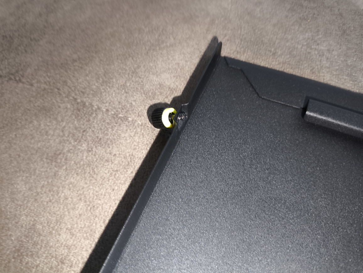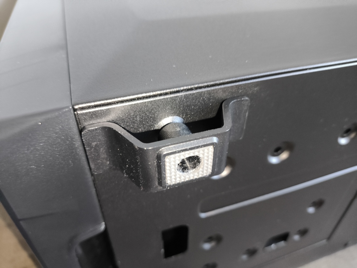 Po przeciwnej stronie znajdziemy klasyczny panel stalowy. W tym przypadku producent zastosował dwa tylne wkręty radełkowane oraz zatrzask kulkowy w dolnej części. Sam proces zdejmowania wygląda nieco inaczej niż w przypadku szkła – po odkręceniu śrub panel odchyla się na zewnątrz, a następnie można go bez problemu zdjąć.